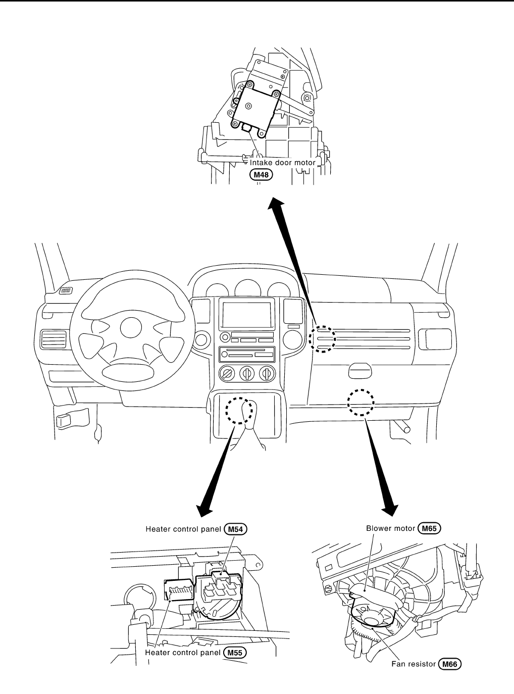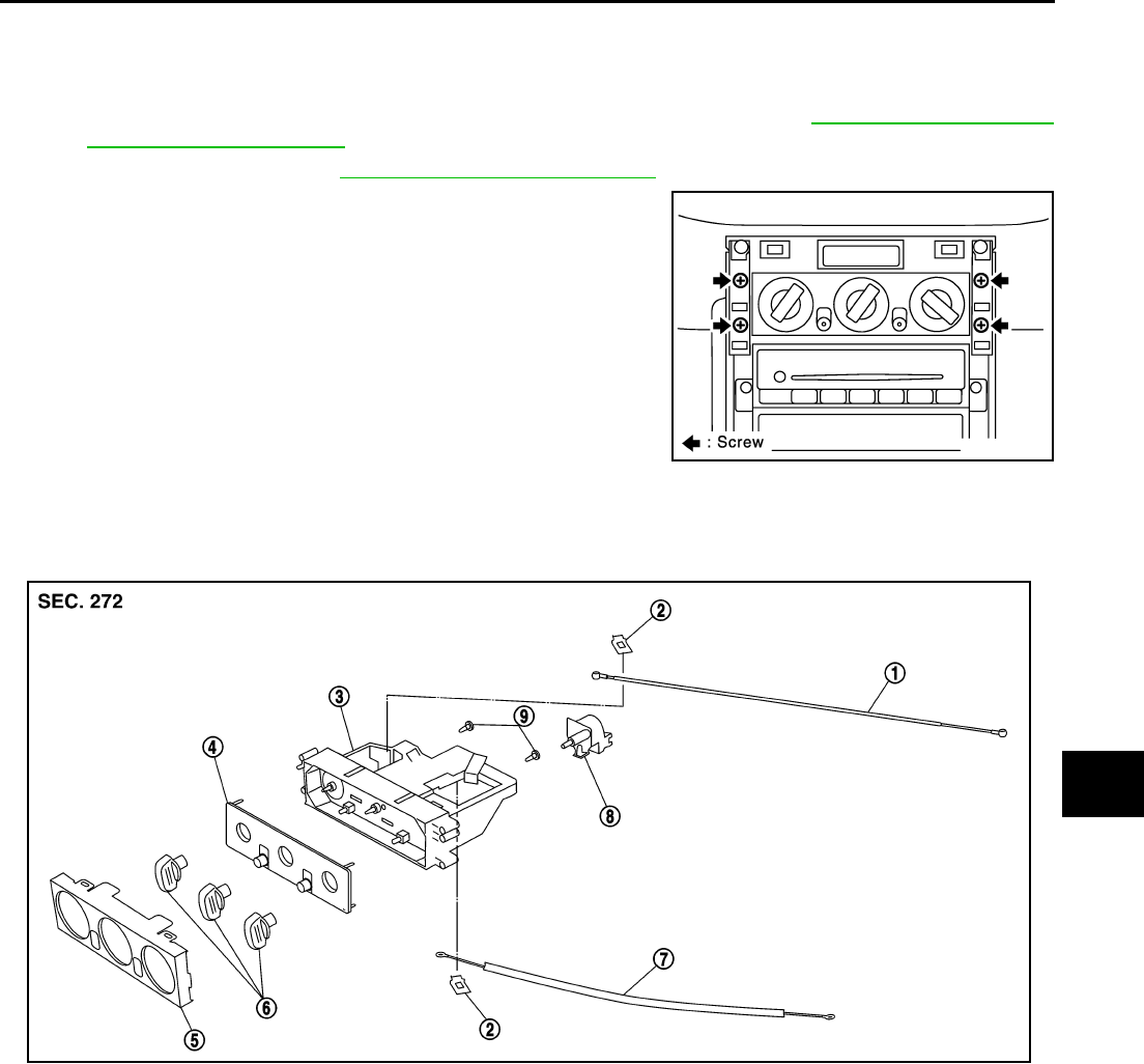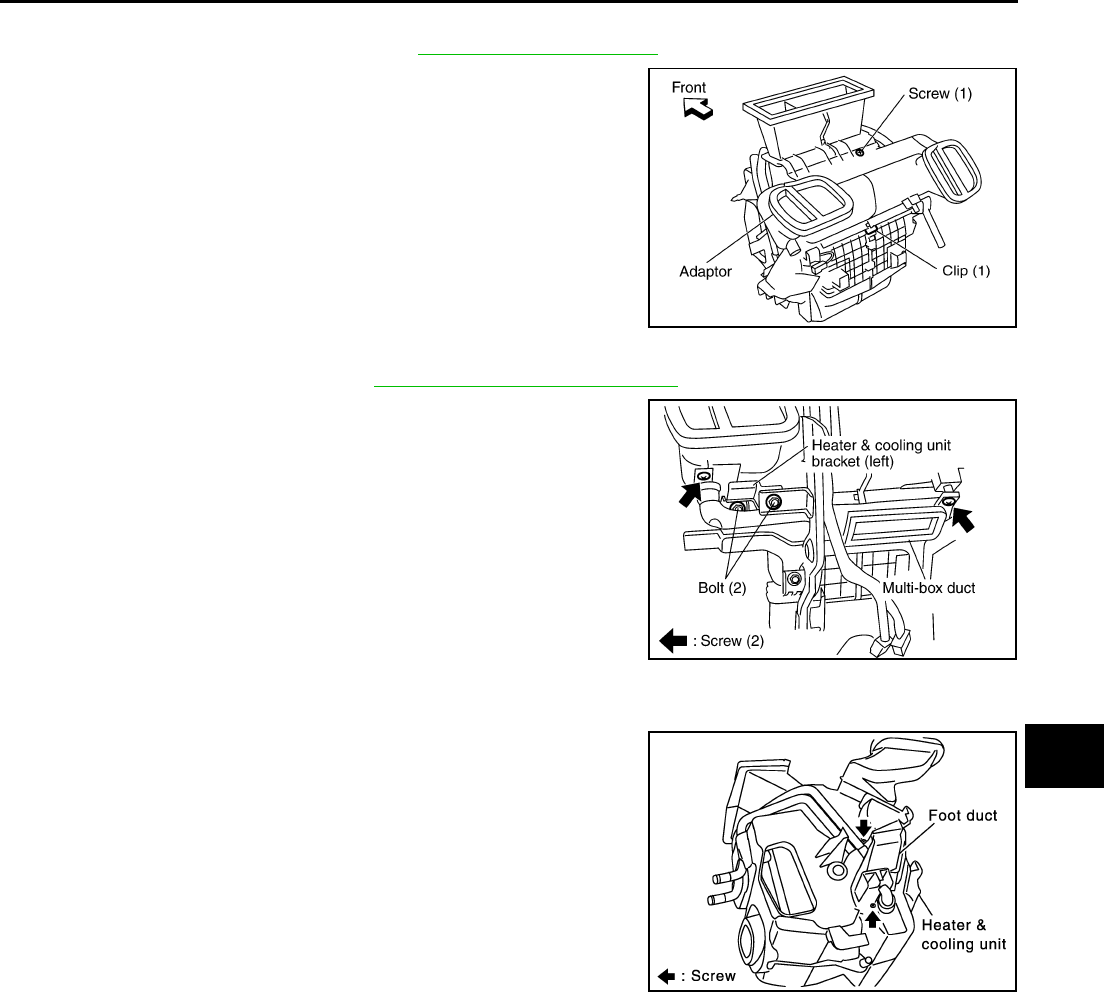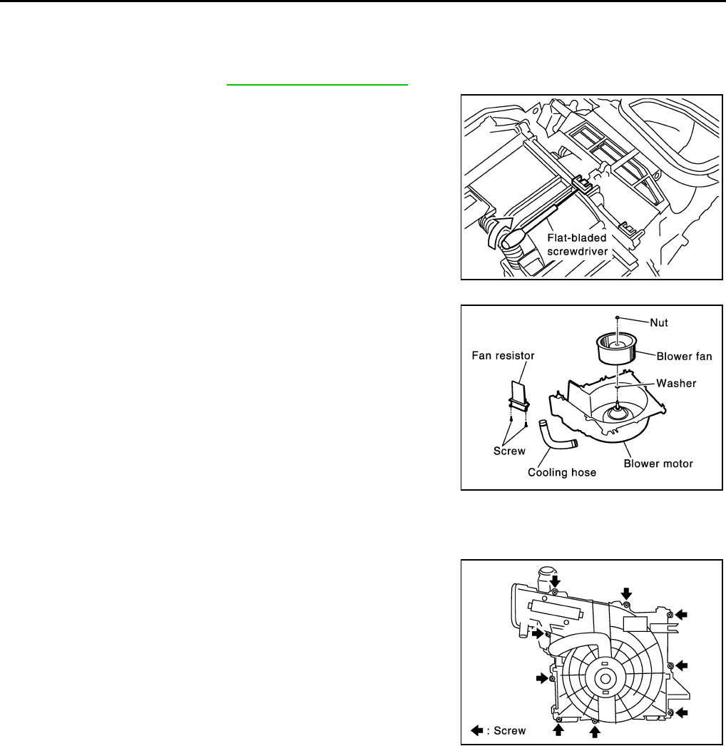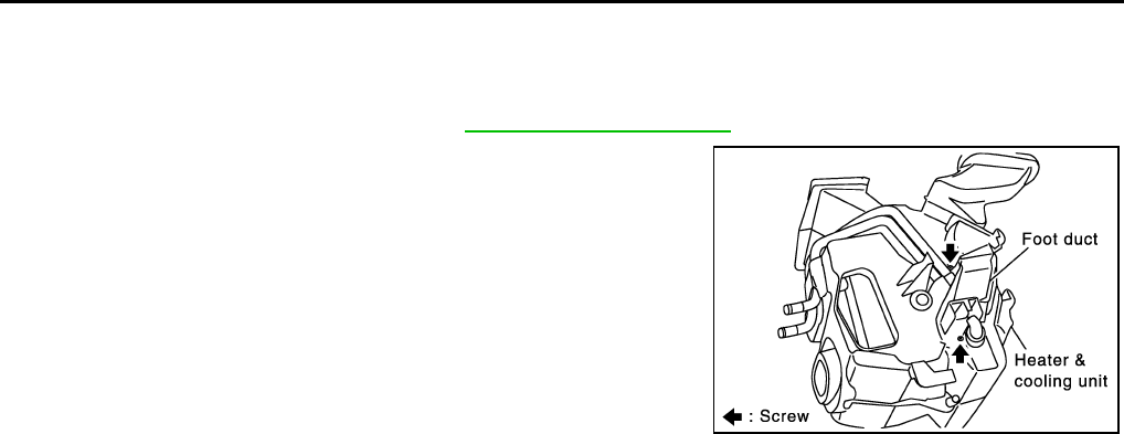 1. Remove heater (& cooling) unit. Refer toMTC-27, "HEATER UNIT" .