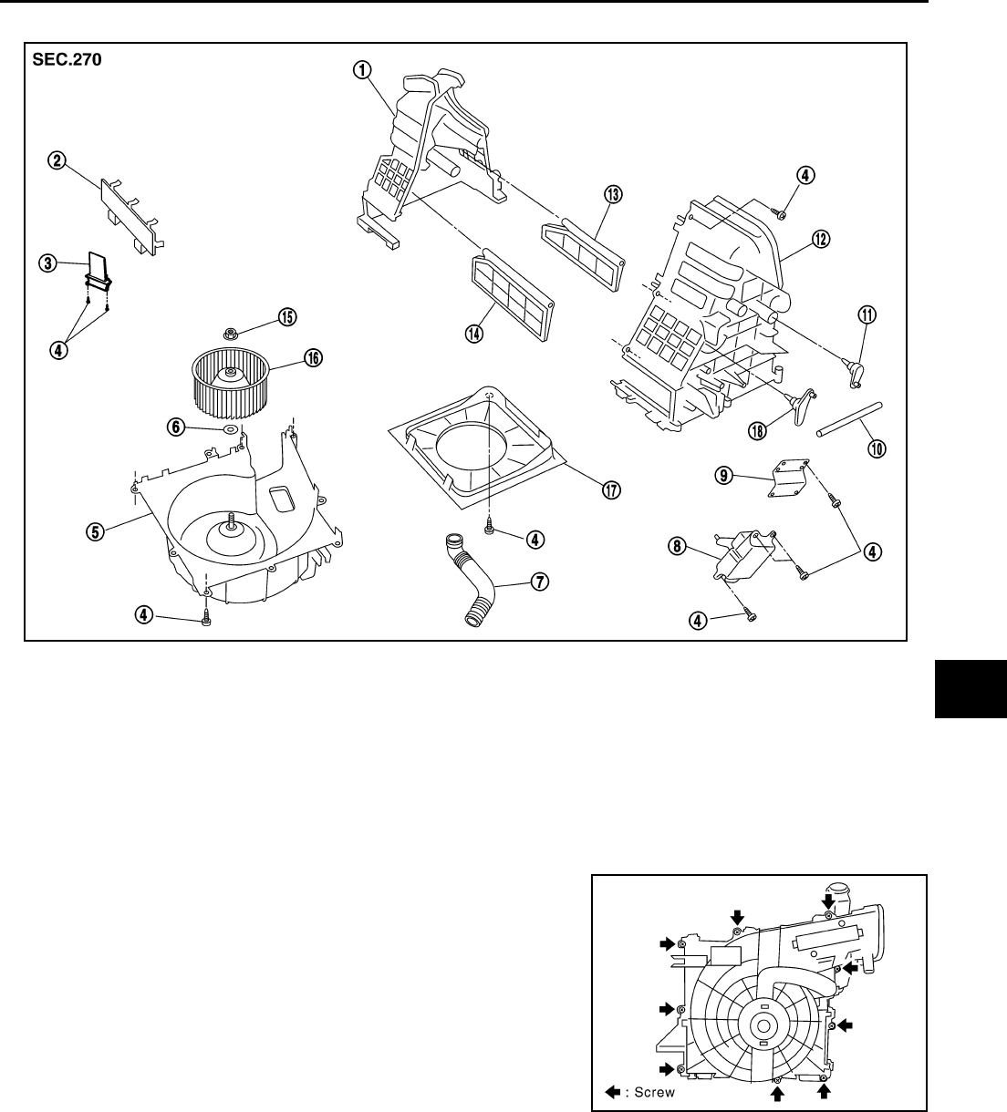 7. Foot duct (right side) 8. Screw 9. Ventilator door link 2