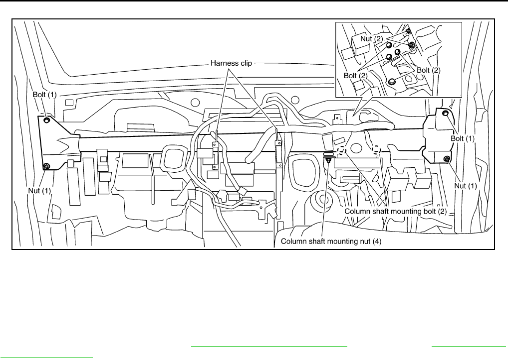 1. Remove instrument panel. Refer to IP-11, "Removal and Installation" .
