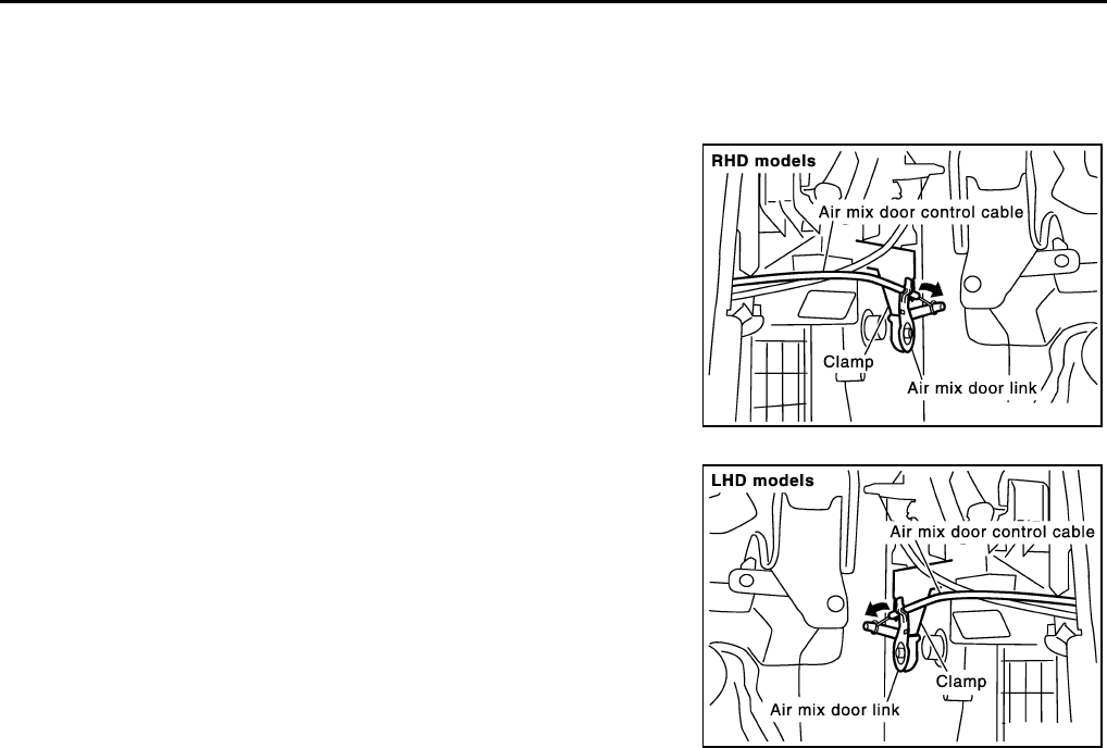 2. Move air mix door lever by hand and hold it at the full cold posi-