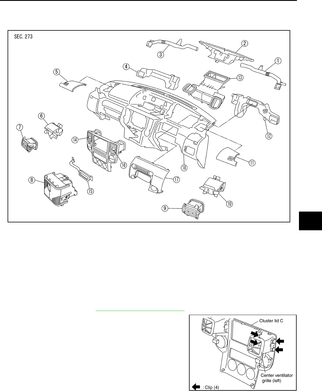 1. Remove cluster lid C. Refer to IP-11, "Removal and Installation" .