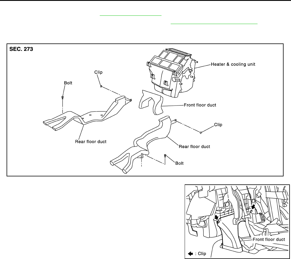 4. Remove mounting bolts and clips, then remove rear floor duct.
