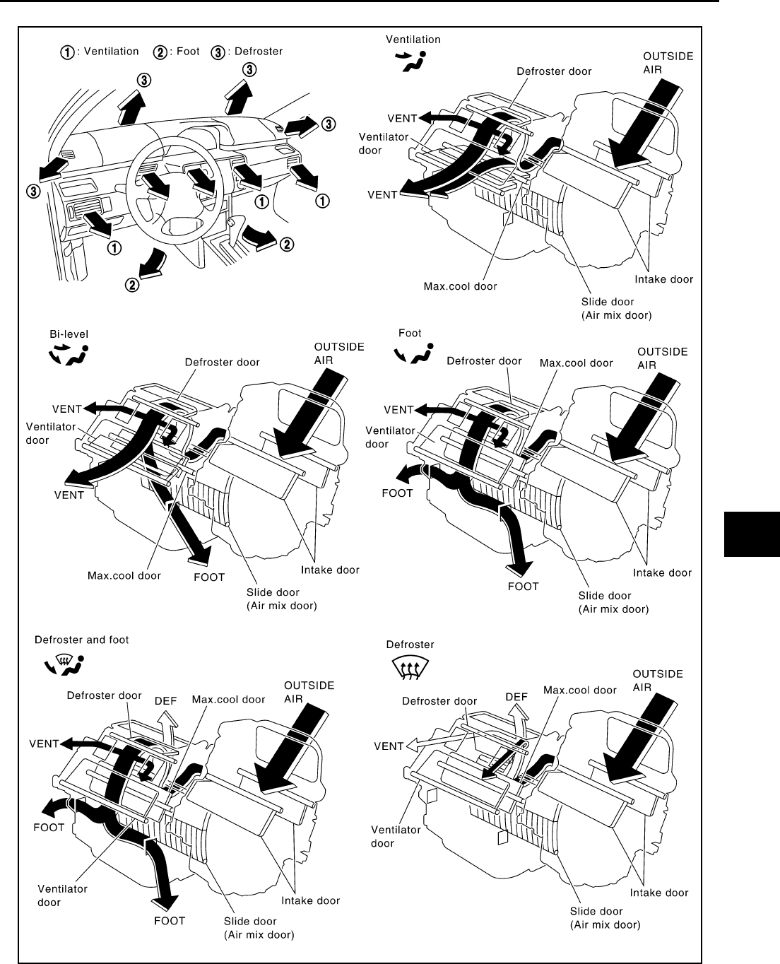 16. Defroster door 17. Ventilator door 18. Max. cool door