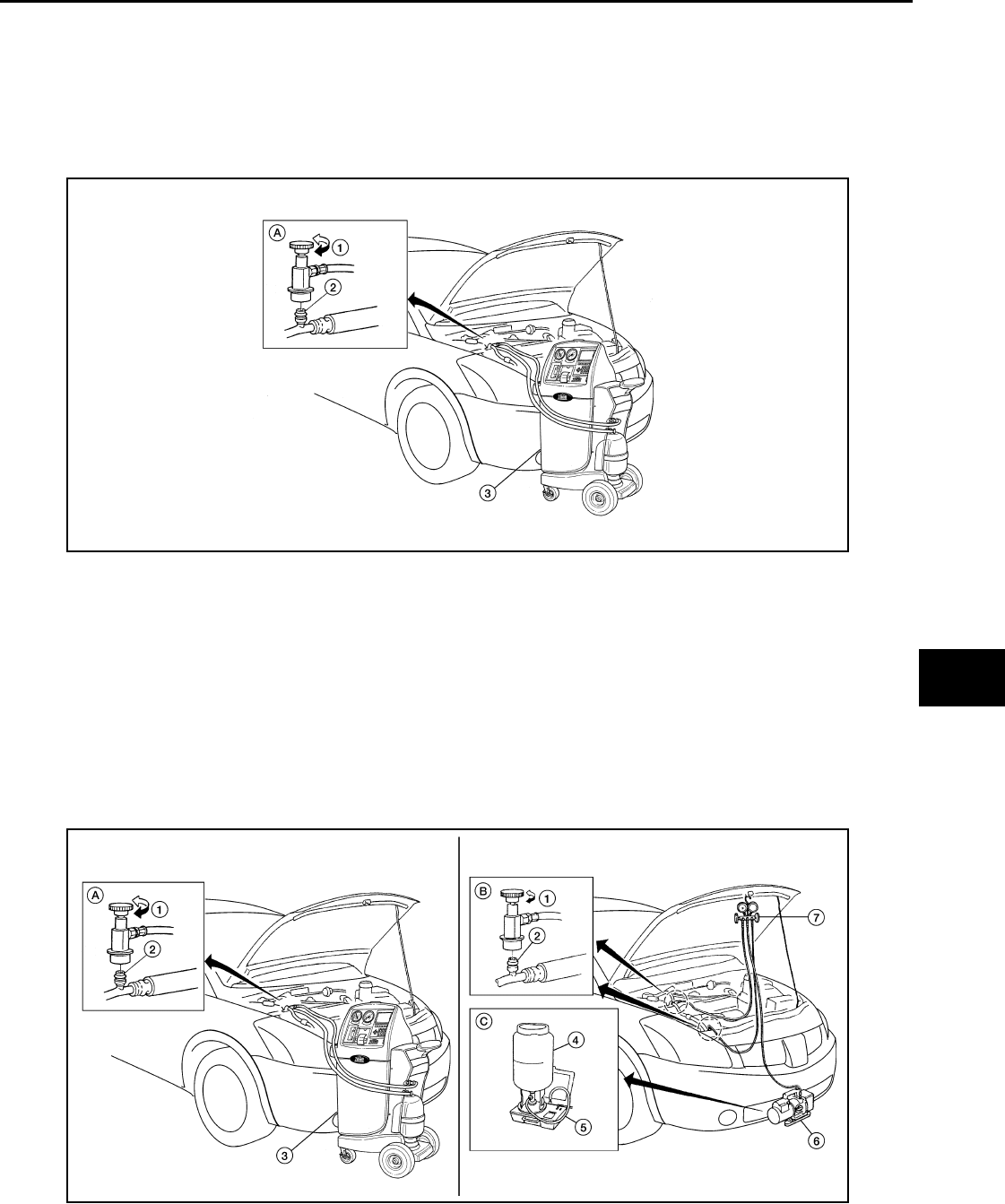 11. Before connecting the recovery/recycling equipment to the A/C system, check the recovery/recycling