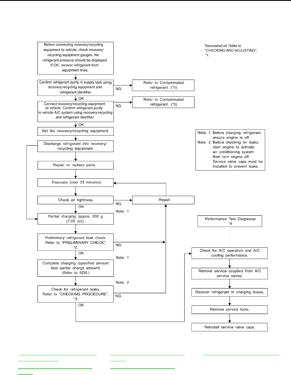 13. Confirm the refrigerant purity in the A/C system using the recovery/recycling equipment and the refriger-