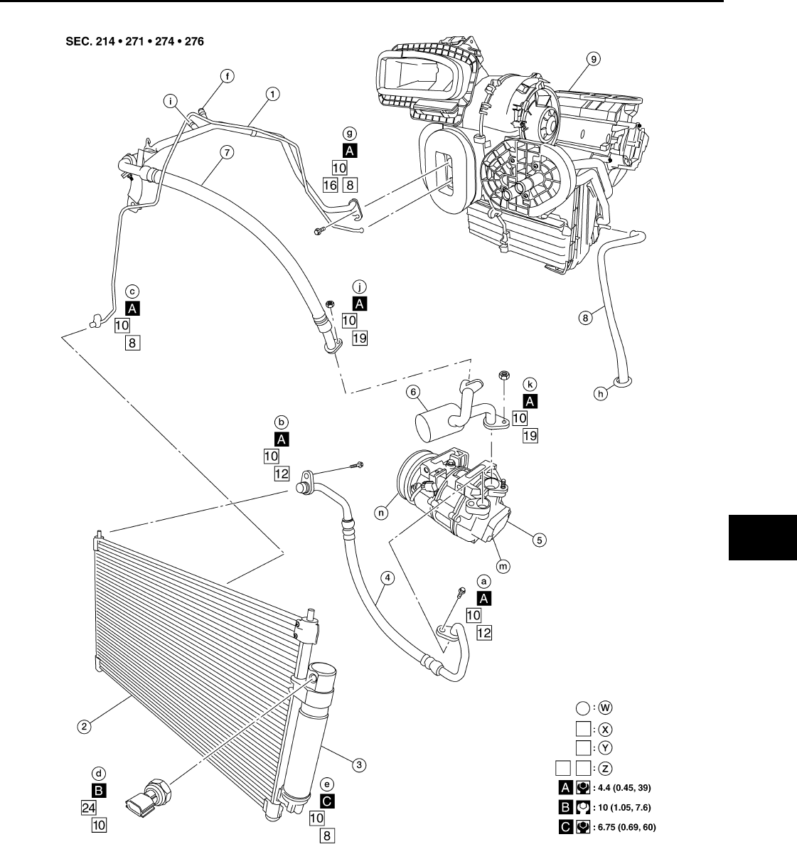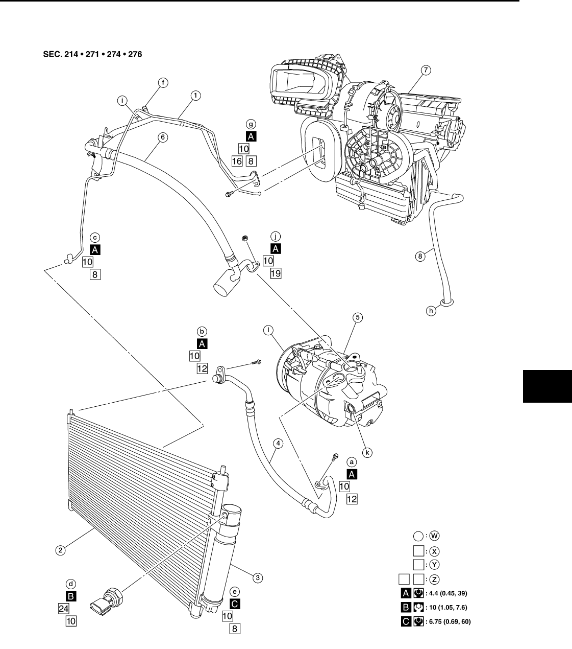 16. Conduct the A/C performance test to ensure that the system works properly. Refer to MTC-56, "Insuffi-
