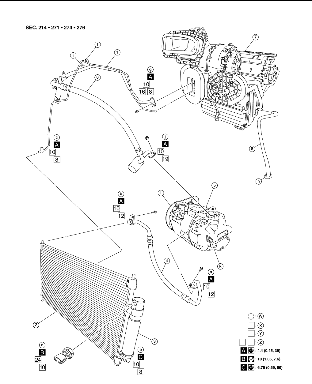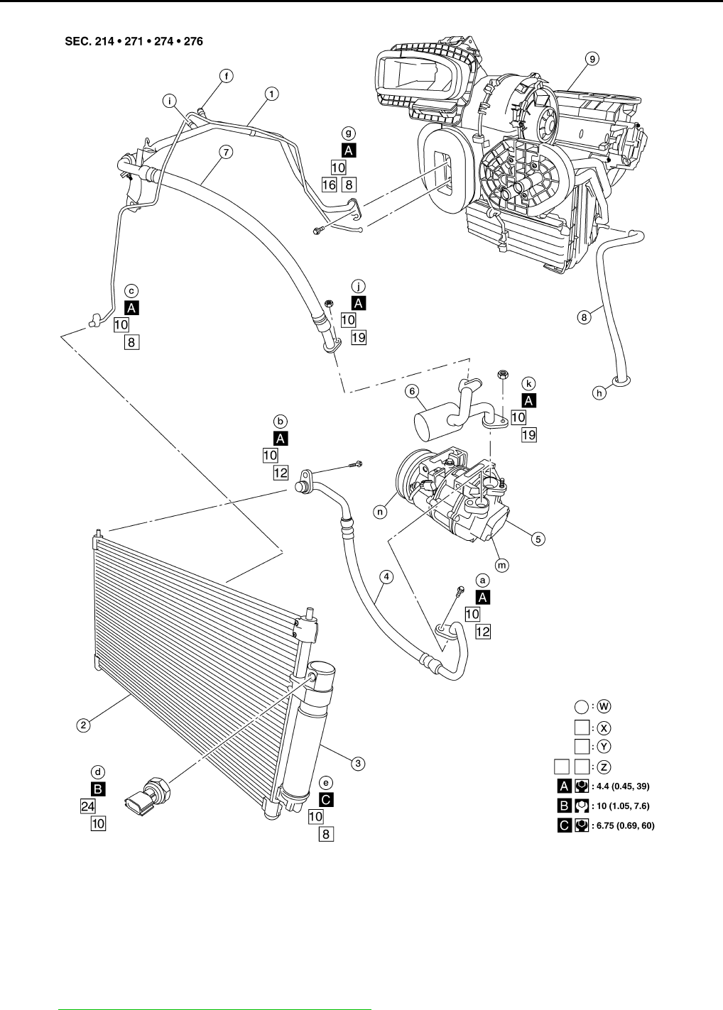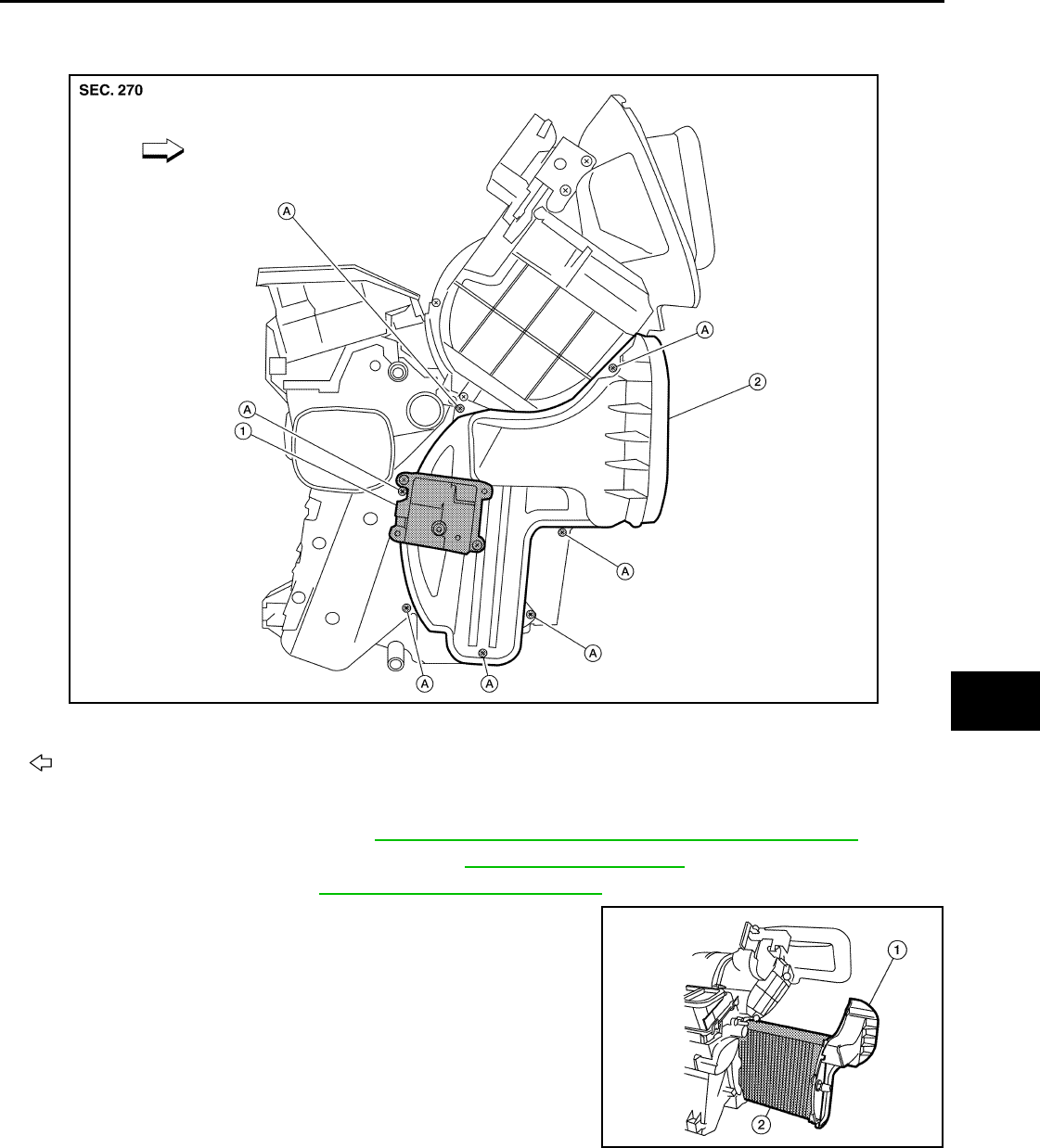 Compressor (service part) charging amount Refer to MTC-18, "Maintenance of Oil Quantity in Compressor".