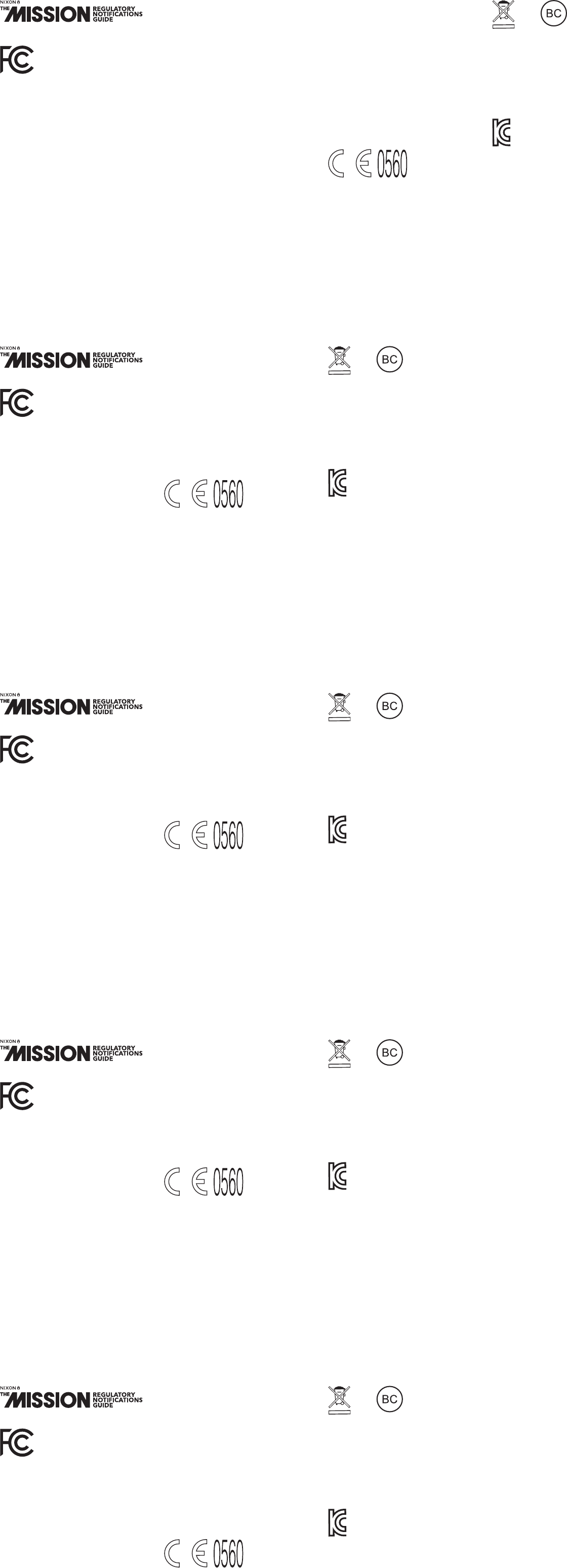 Nixon, Inc. Smart Watch THE MISSION REGULATORY INFO NO CMIIT indd