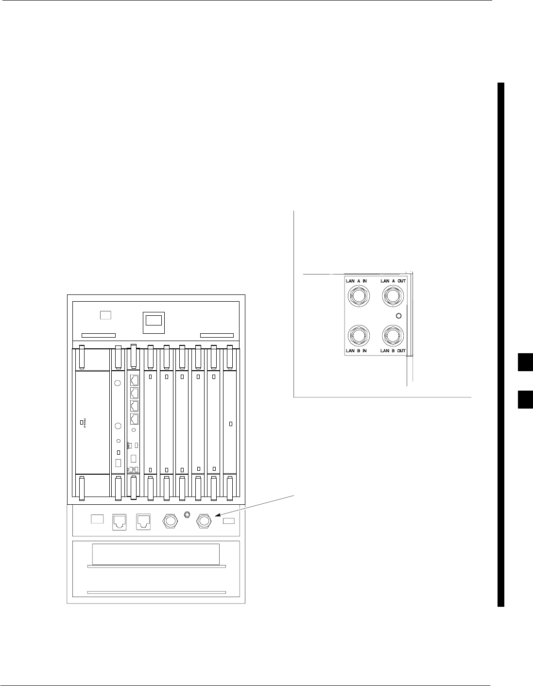 3At the rear of the BTS, verify that 20 or 25 A circuit breaker is OFF (pulled out). See Figure 5-3 or