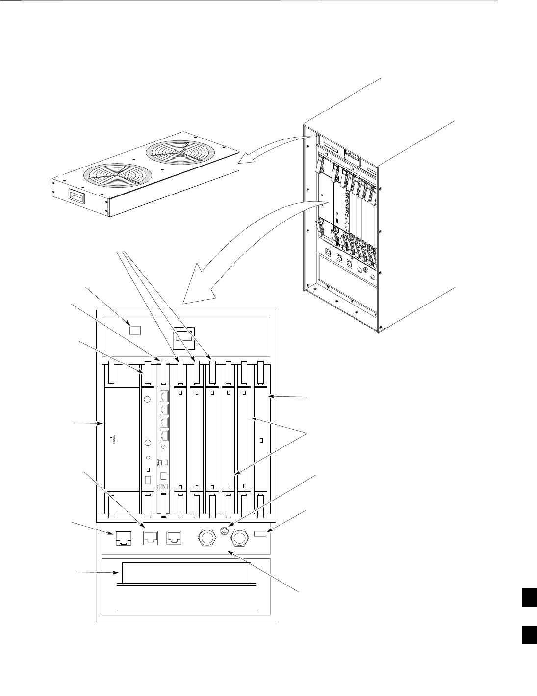 The fan module is located above the CCP2 Shelf at the front of the