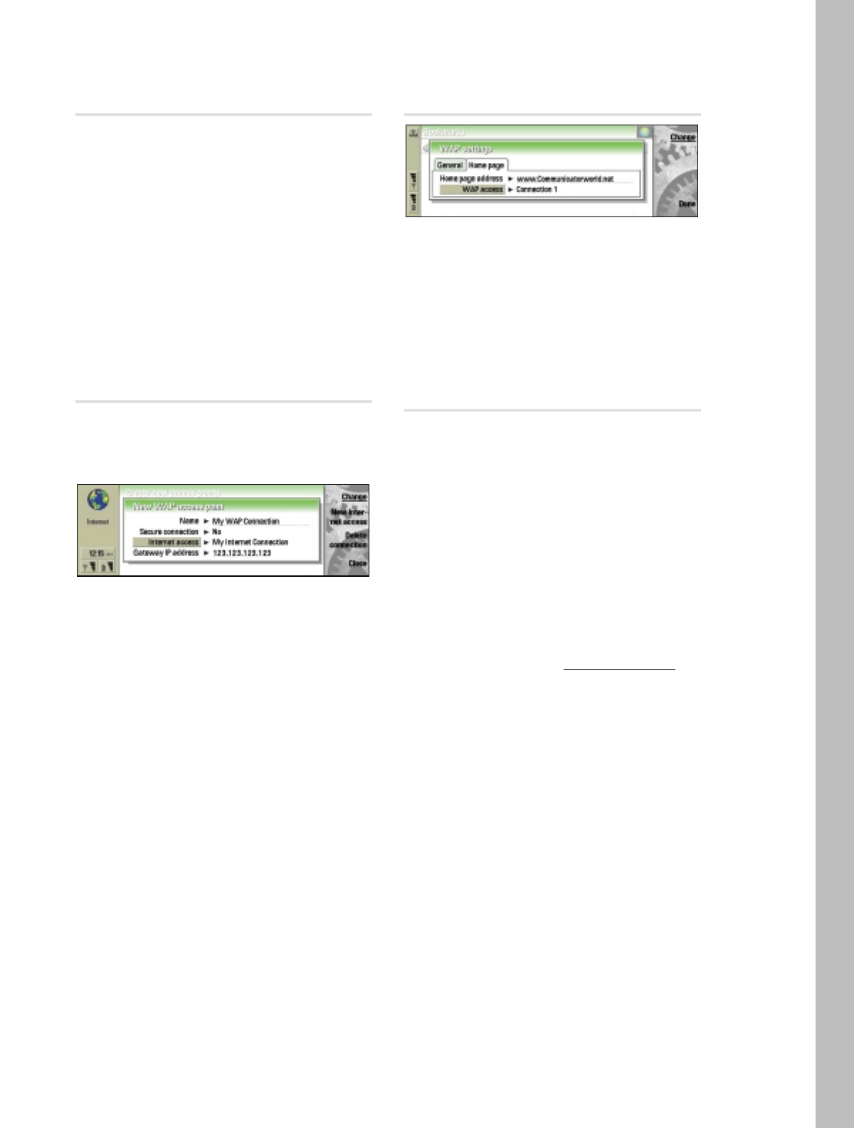 WAP Internet access point: Your WAP service provider See “WAP” in the User Guide.
