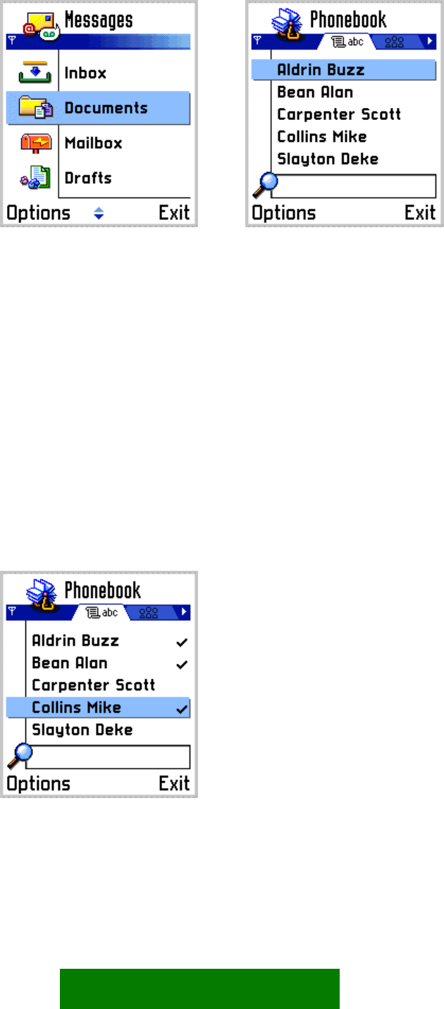 to be placed in the options menu. In this case, too, the right softkey will save the