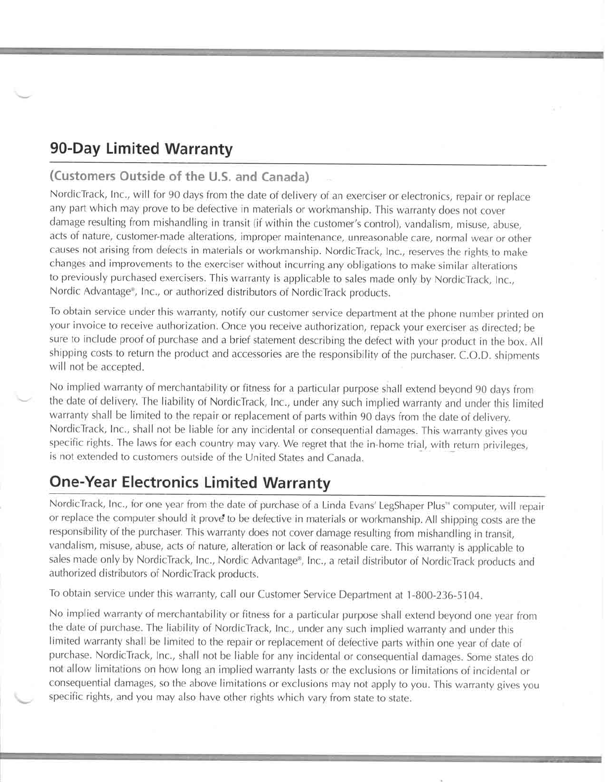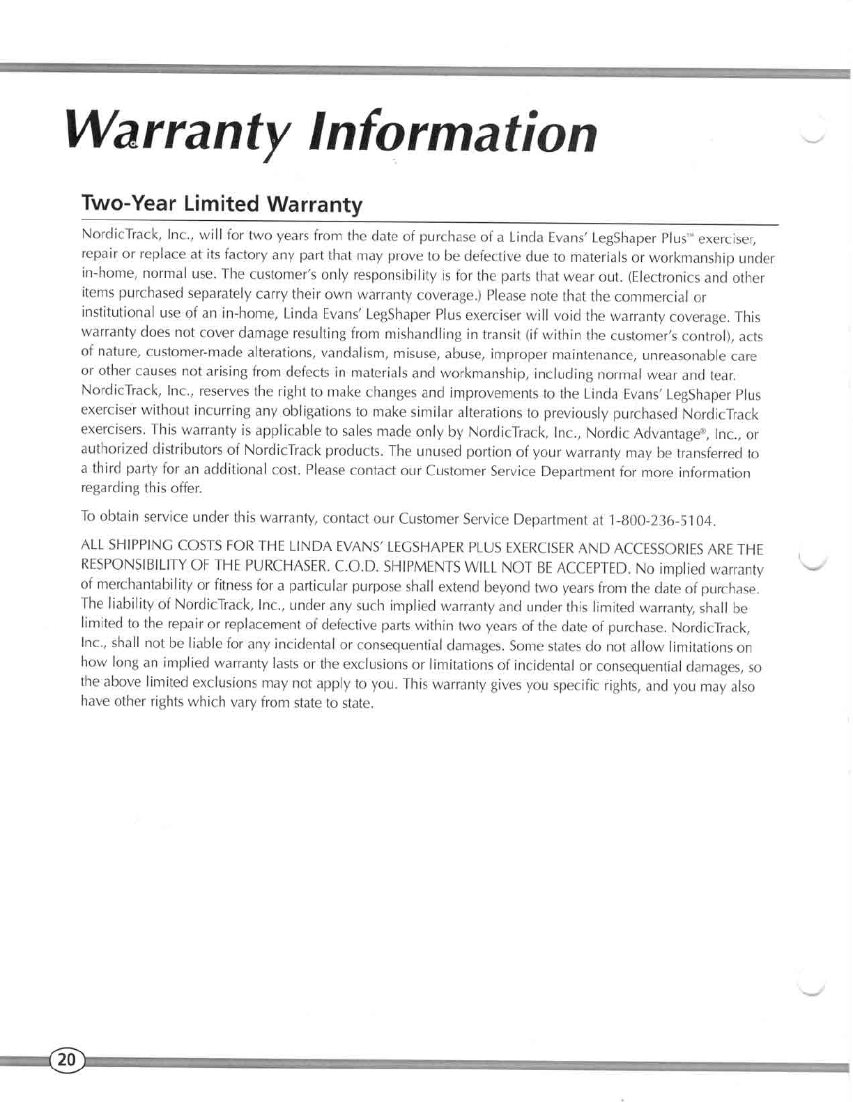 Nordic Track Nt290300 Owner S Manual Leg Shaper