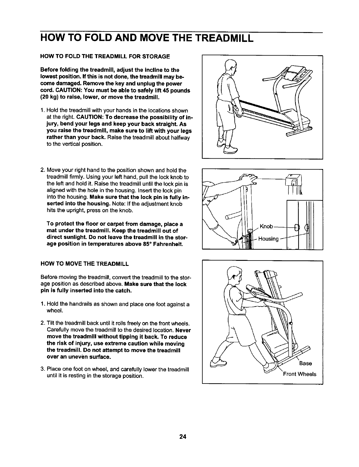 HOW TO FOLD AND MOVE THE TREADMILL .................................................. 24