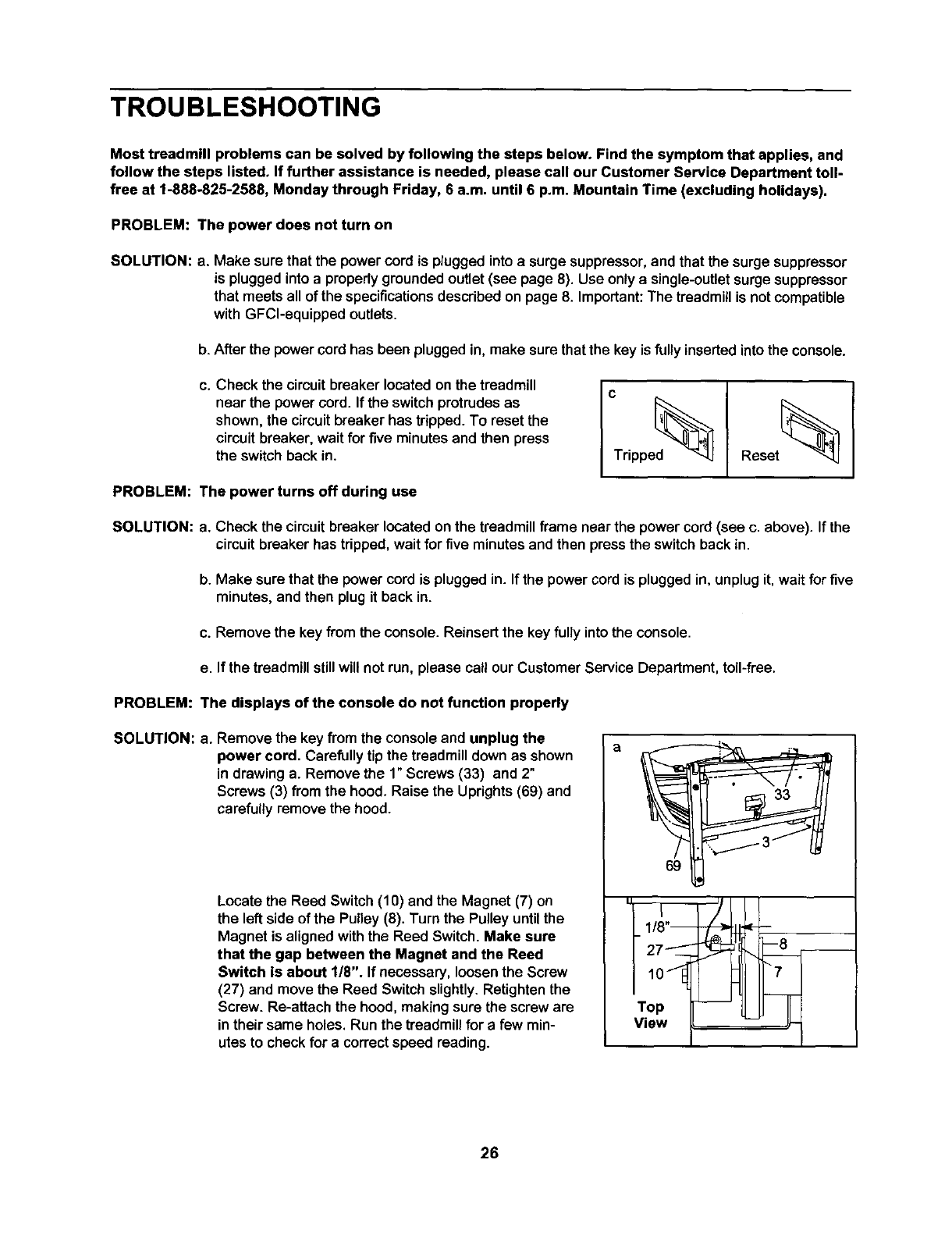 HOW TO GET PARTS AND SERVICE--Simply cell our Customer Service Department at 1-888-825-2588 and tell them