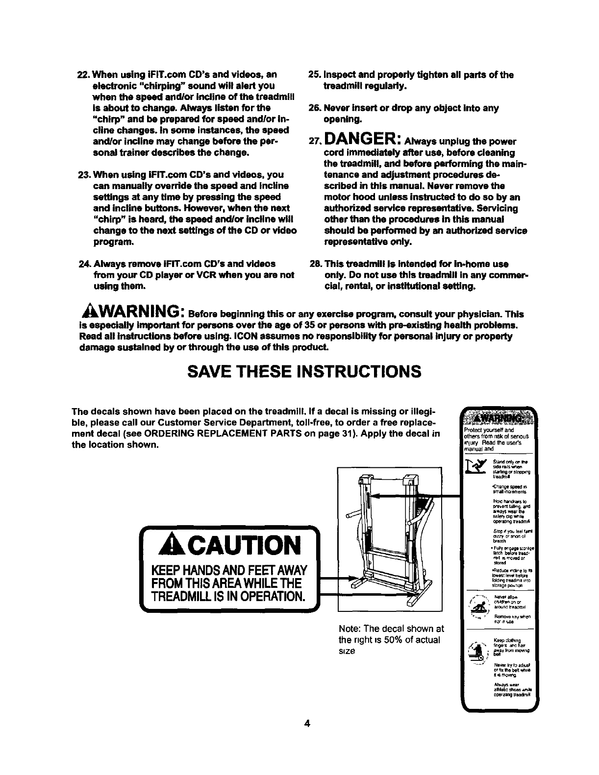 2. Use the treadmill only as descdbed.