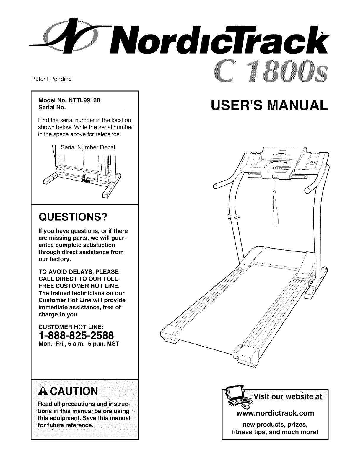 WHAT IS COVERED--The entire NordicTrack :_ C 1800s treadmill ("Product") is warranted to be free of all defects in