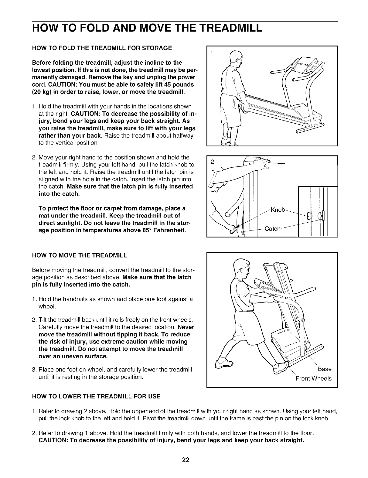 HOW TO FOLD AND MOVE THE TREADMILL .................................................. 22