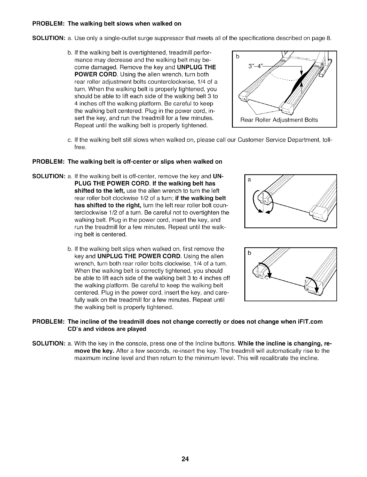 treadmill is not working properly. (See