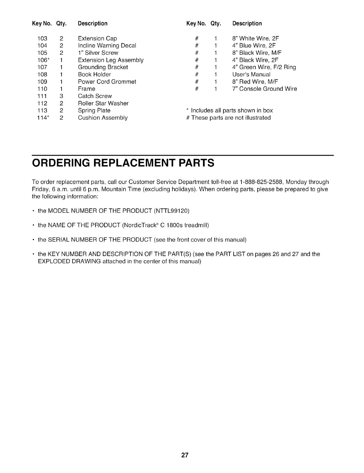 HOW TO GET PARTS AND SERVICE--Simply call our Customer Service Department at 1-888-825-2588 and tell them