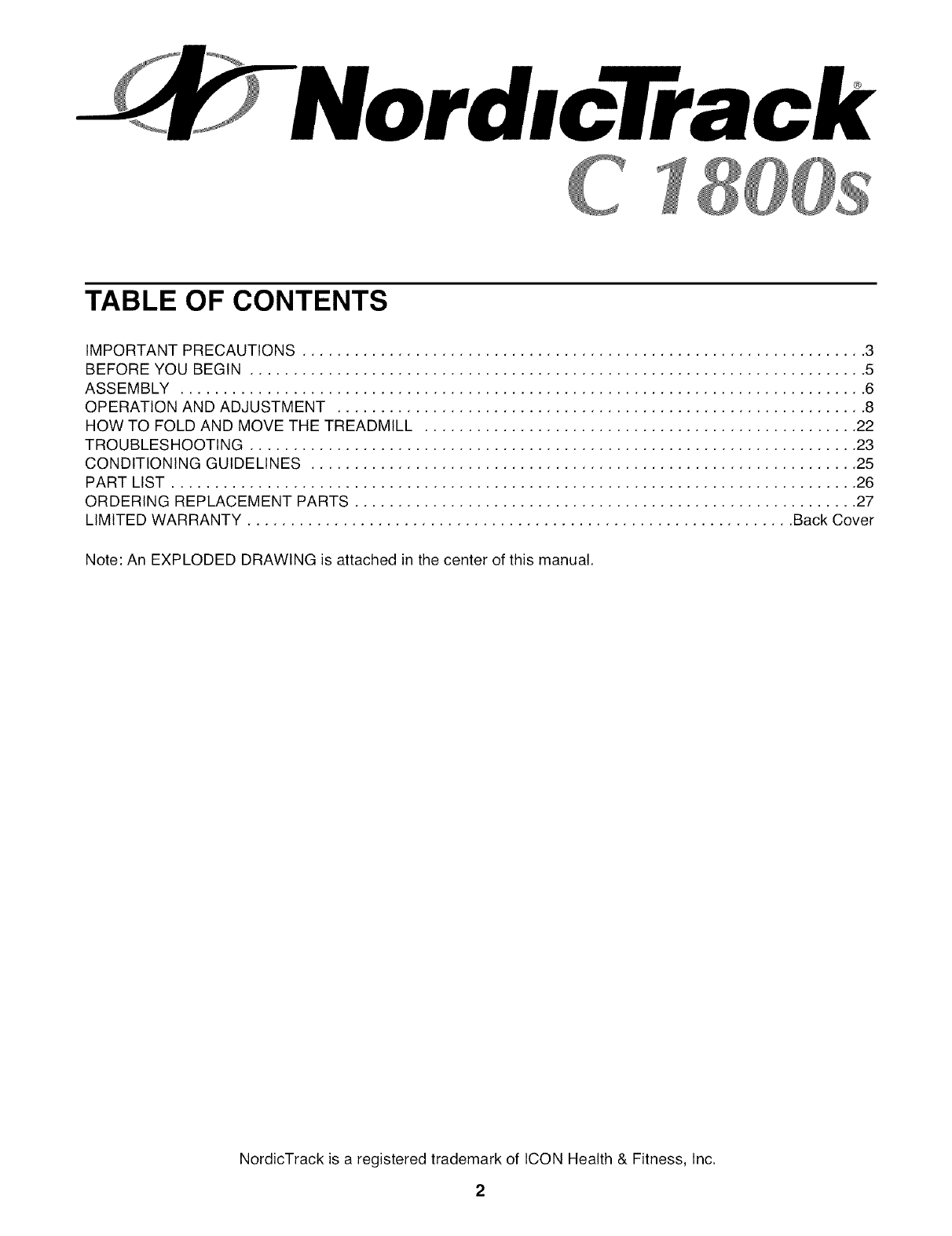 NordicTrack is a registered trademark of ICON Health & Fitness, Inc.
