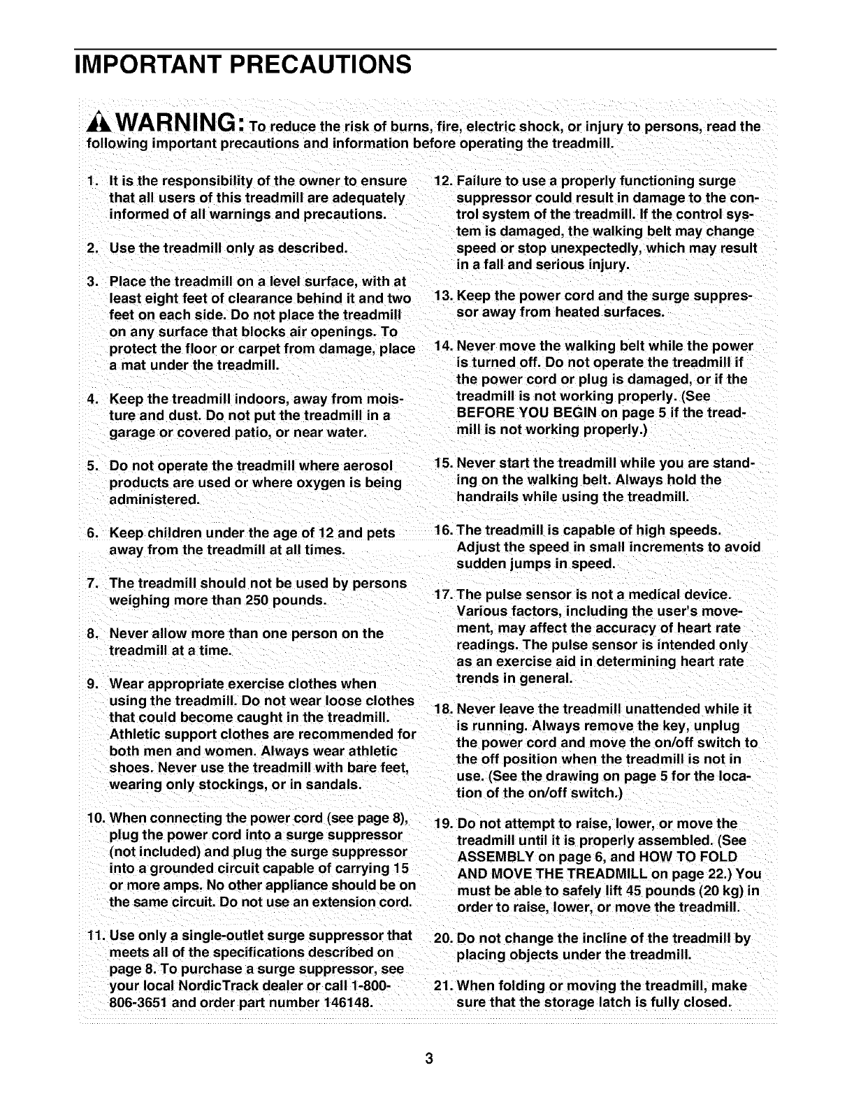 following important precautions and information before operating the treadmill.