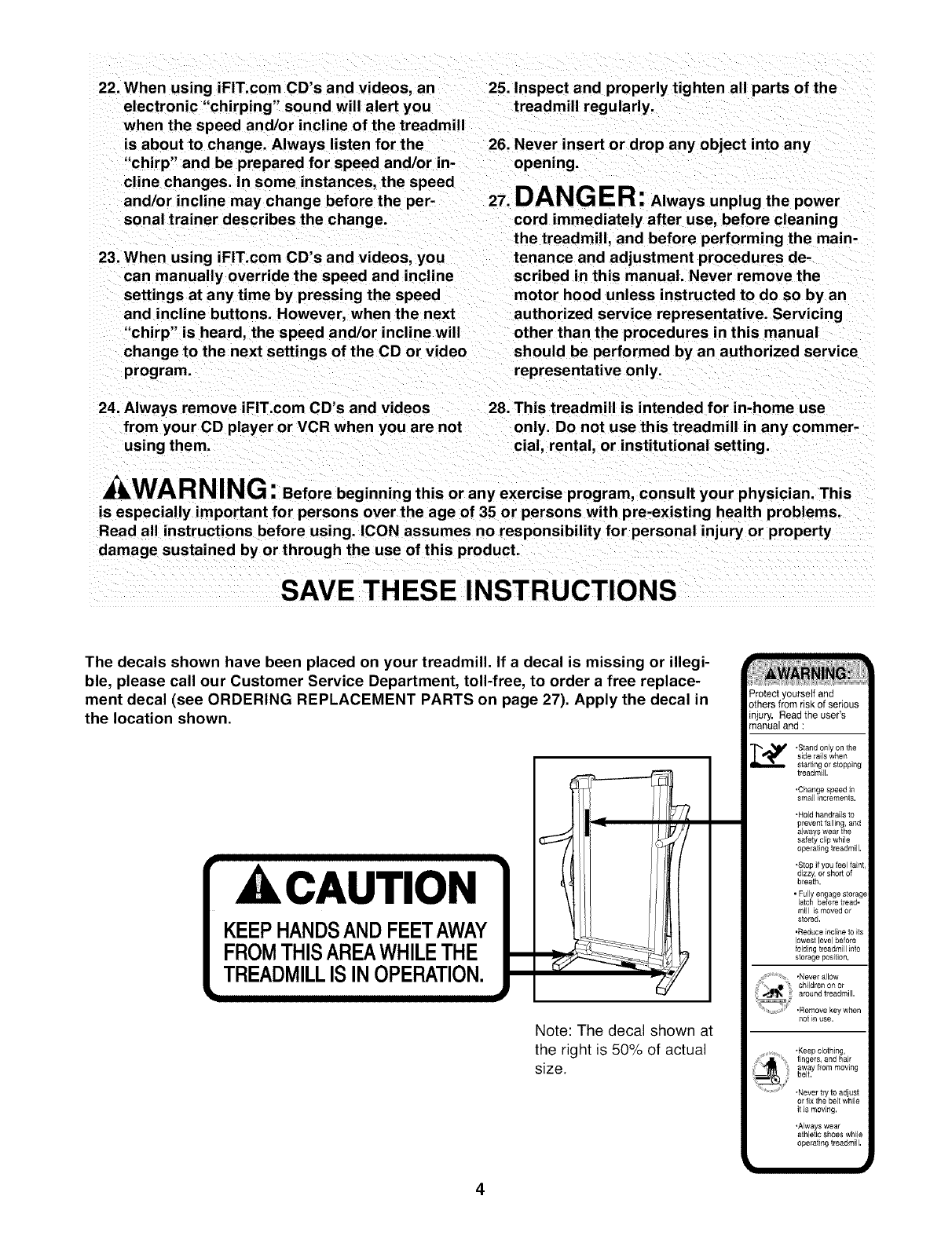 away from the treadmill at all times.