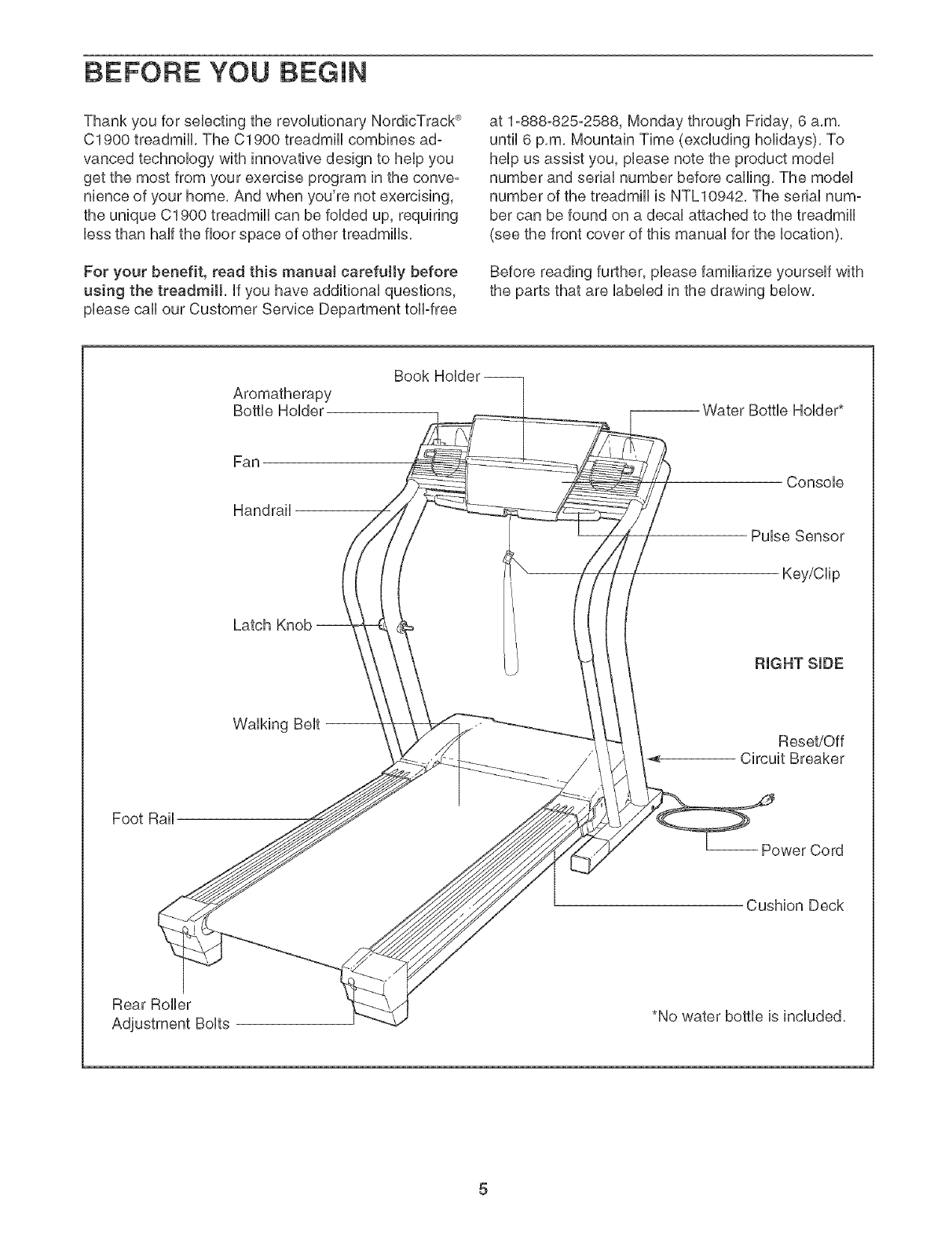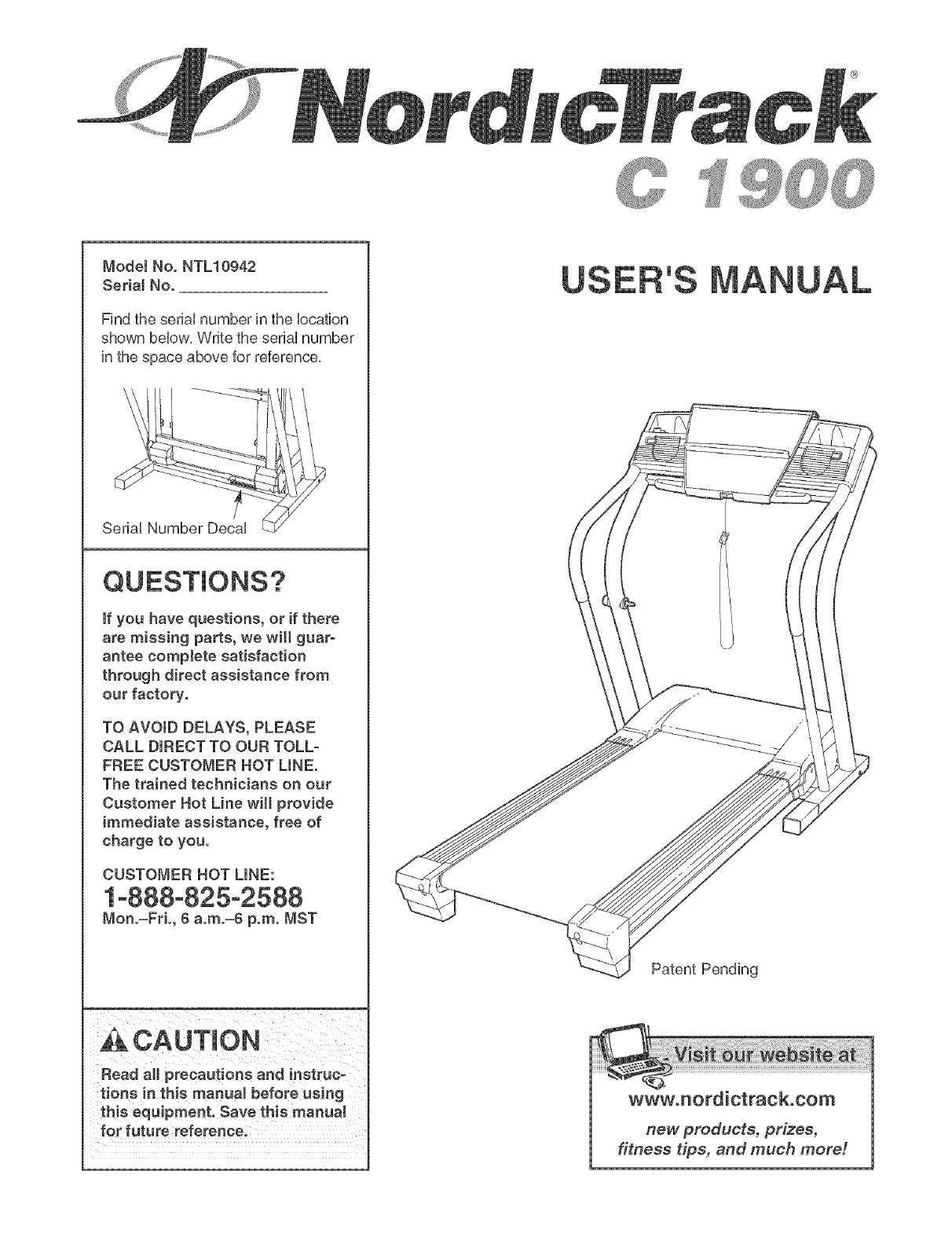 the NAME OF THE PRODUCT (NordicTrack ®C1900 treadmill)