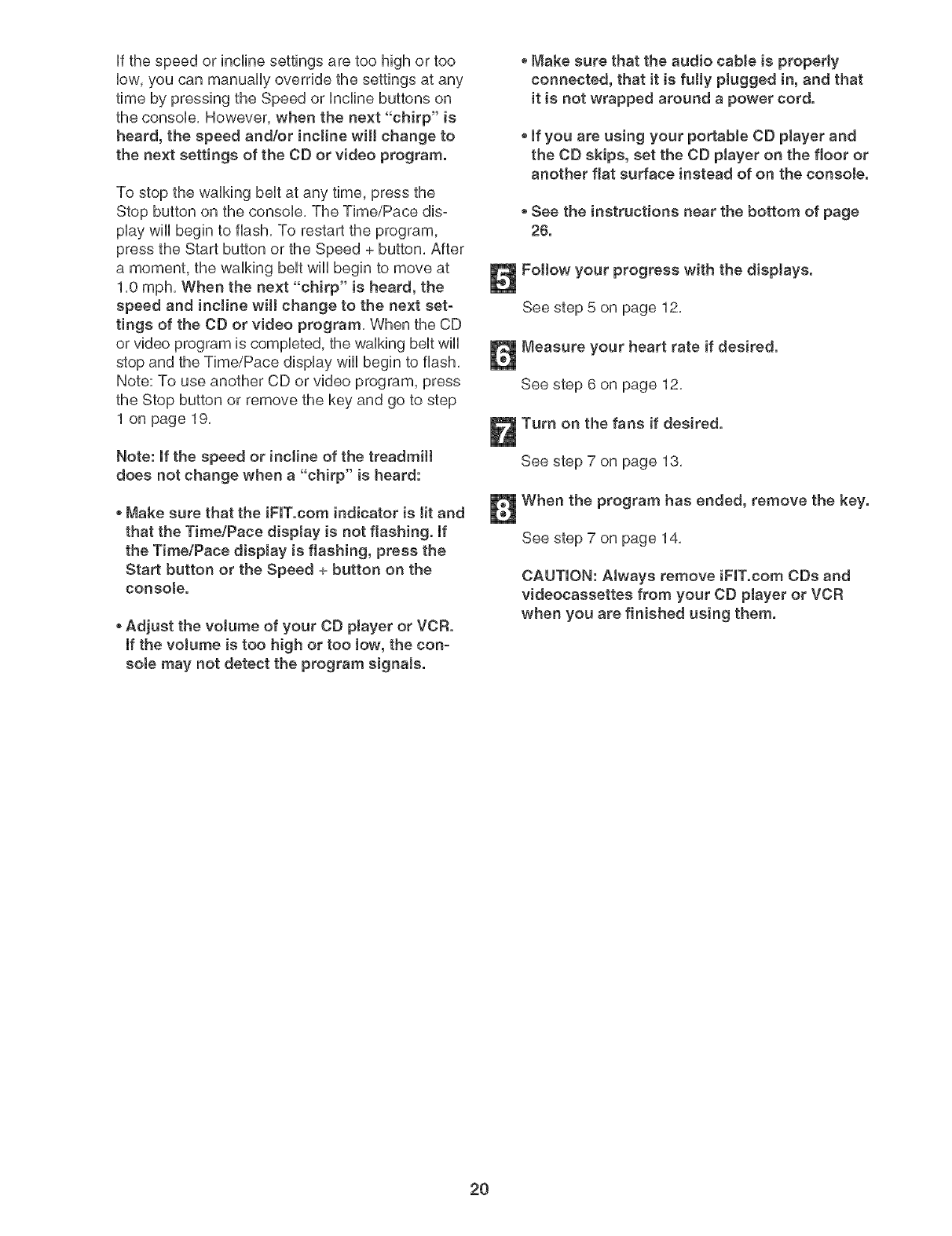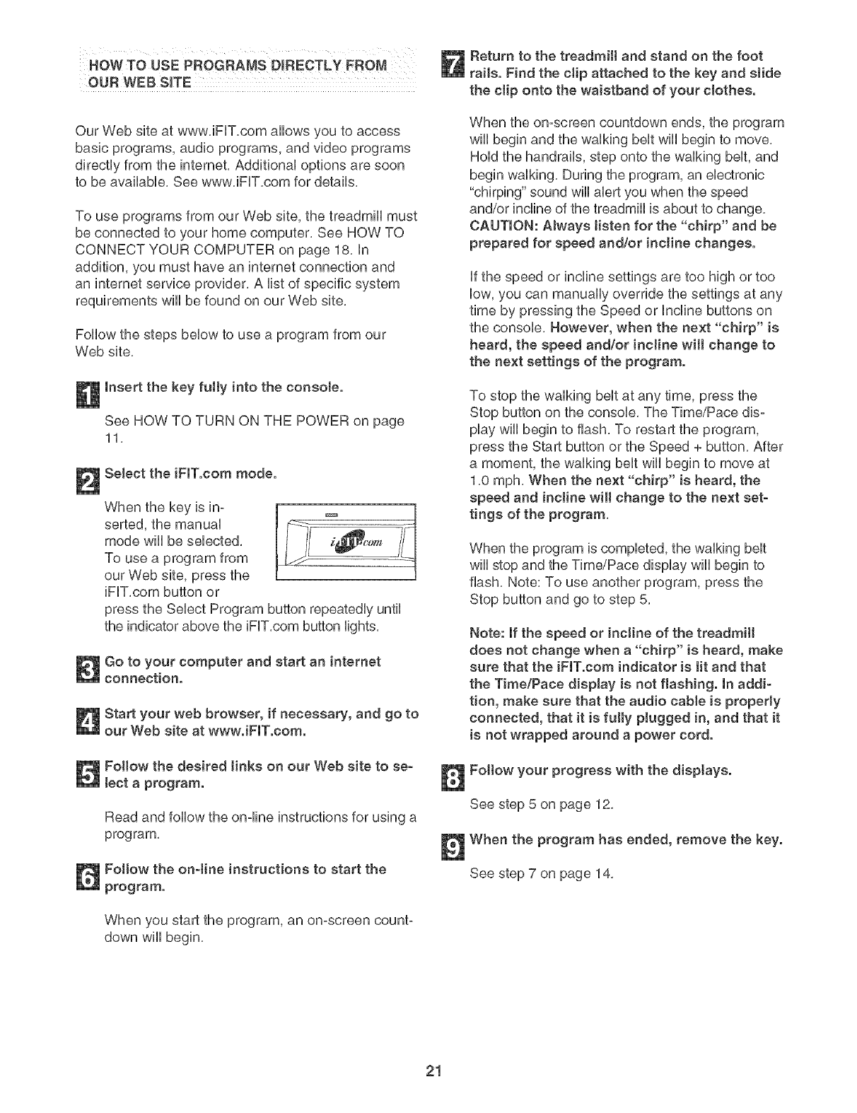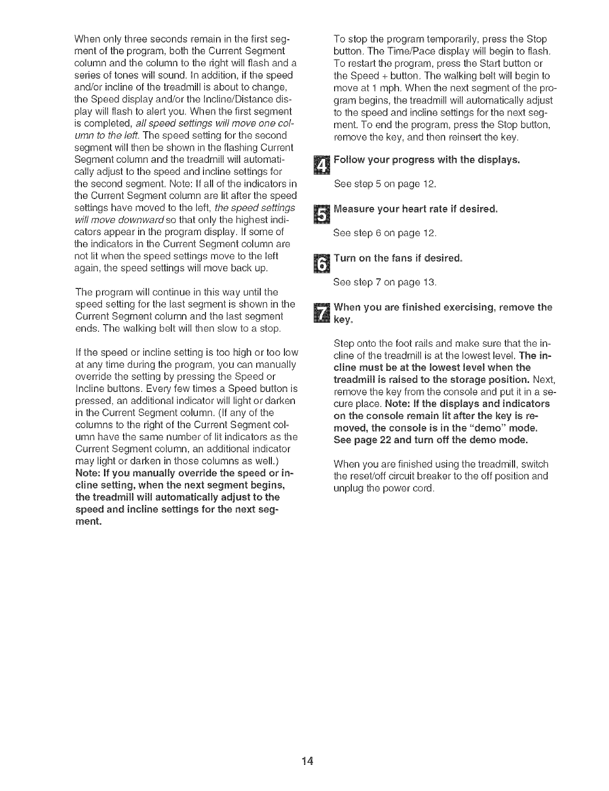 2. Use the treadmill onty as described, speed or stop unexpectedly, which may result