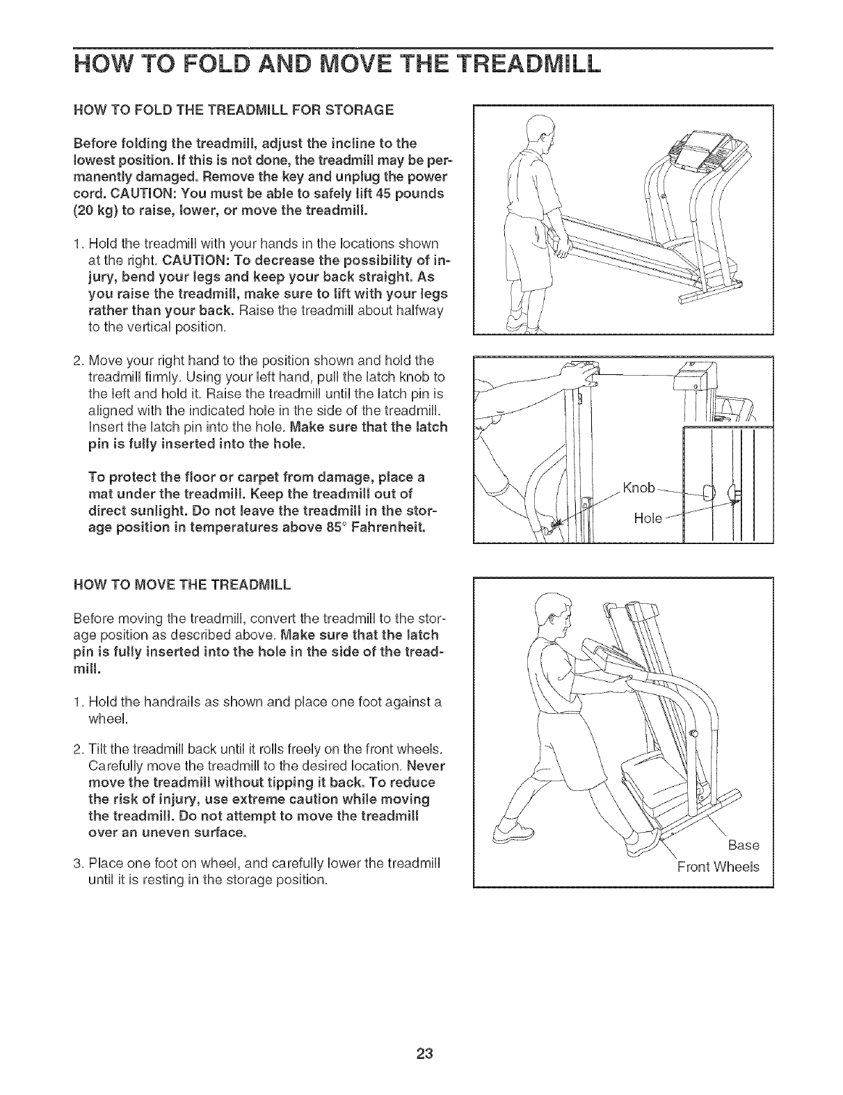 HOW TO FOLD AND MOVE THE TREADMHLL .................................................. 23