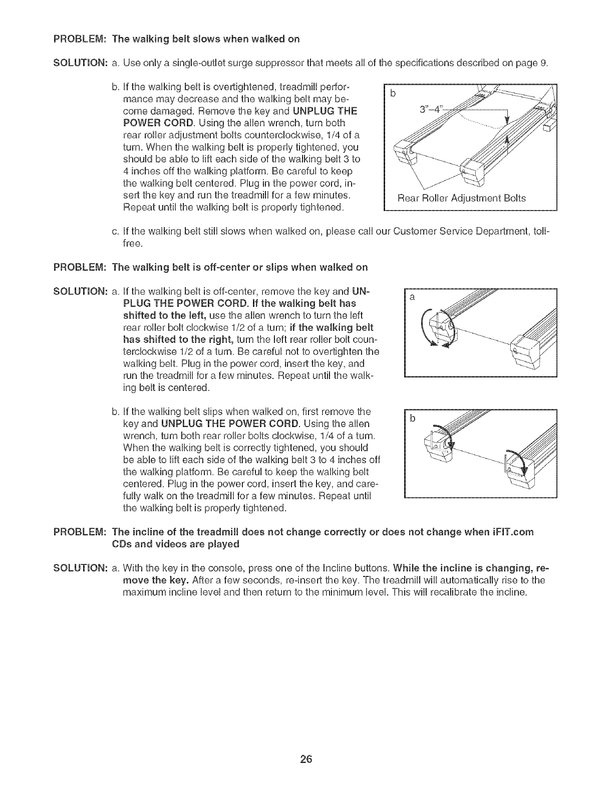 4. Keep the treadmill indoors, away from mois- treadmill is not working properly. (See