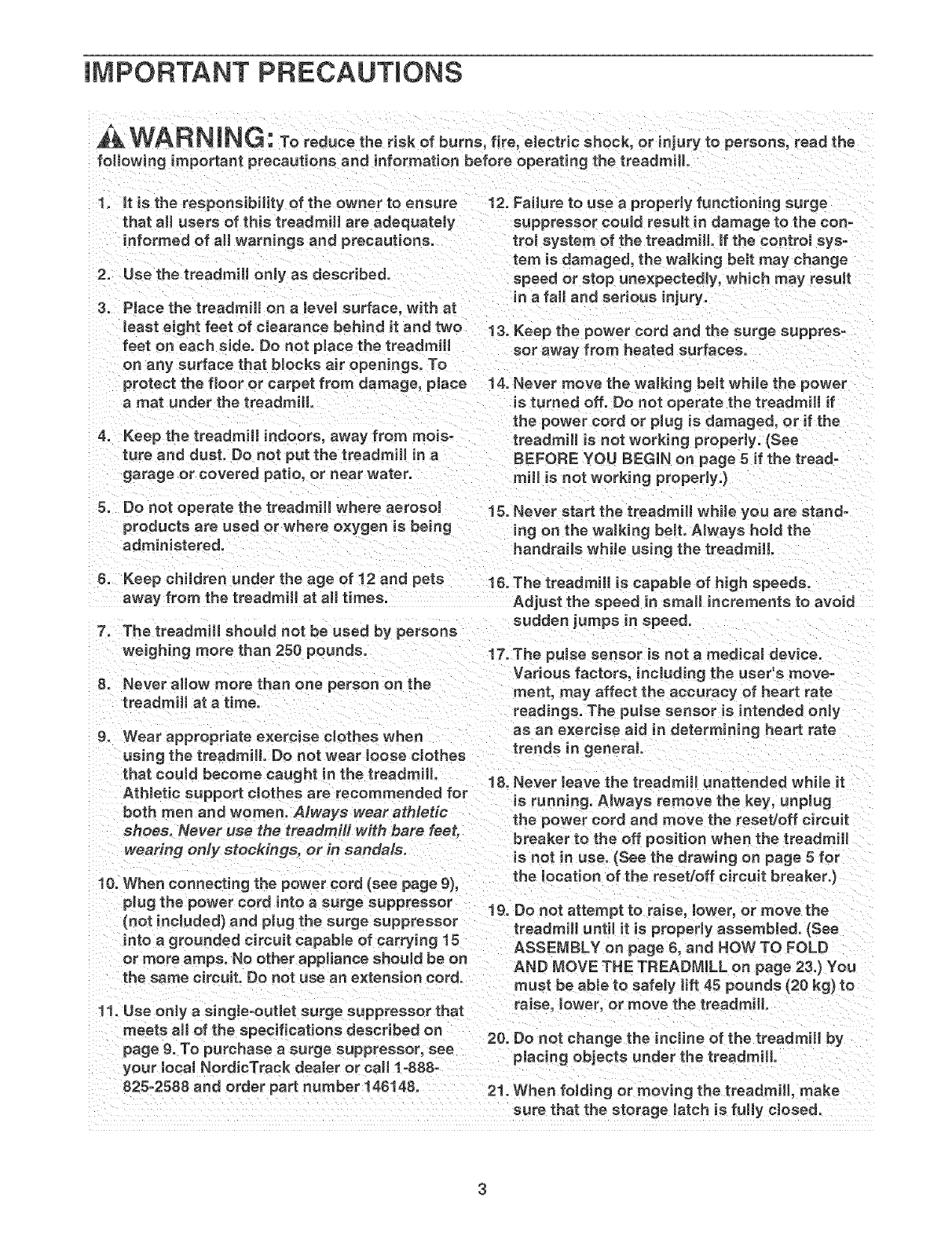 following important precautions and information before operating the treadmill.
