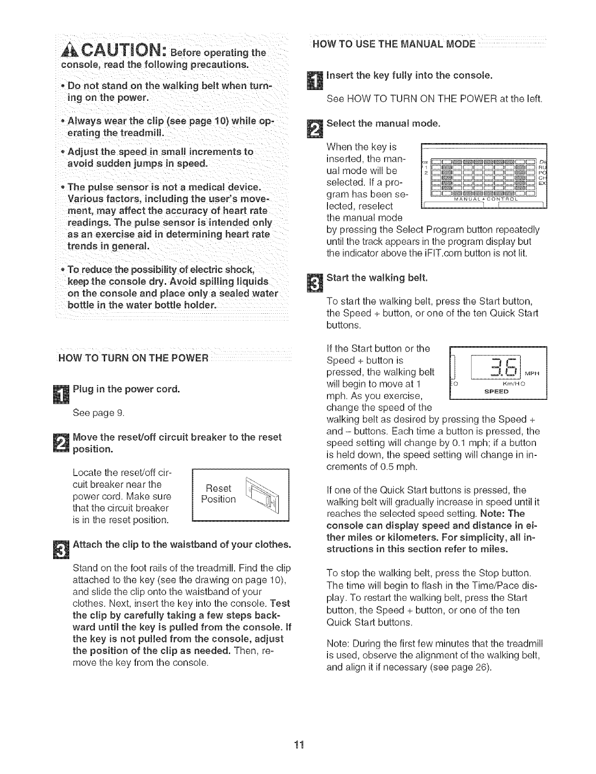 away from the treadmill at all times. Adjust the speed in smalJ increments to avoid