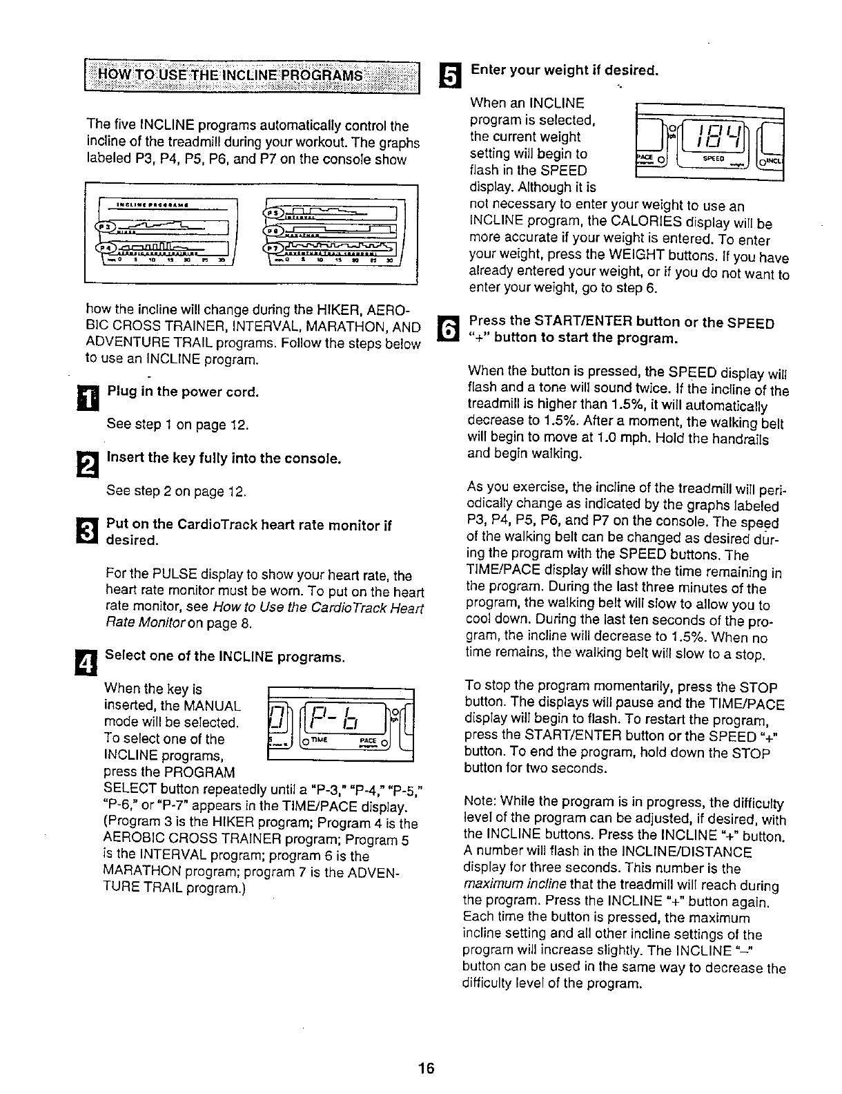 How to use the Incline Programs ........................................................... 16