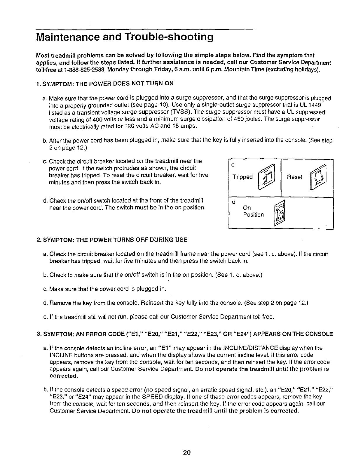 If possible, place the treadmill near your telephone for easy reference when calling.