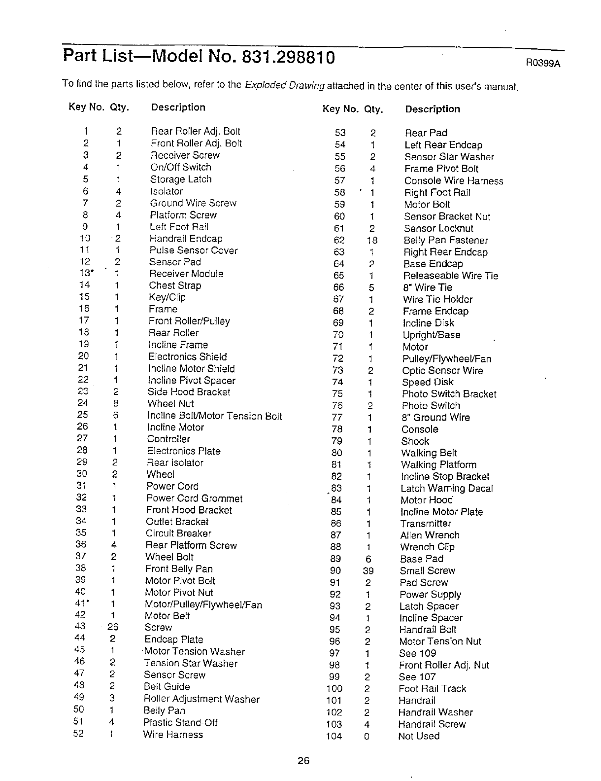 Exploded DrawingmModel No. 831.298810 Ros99A