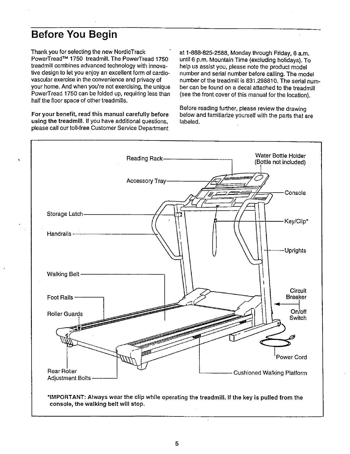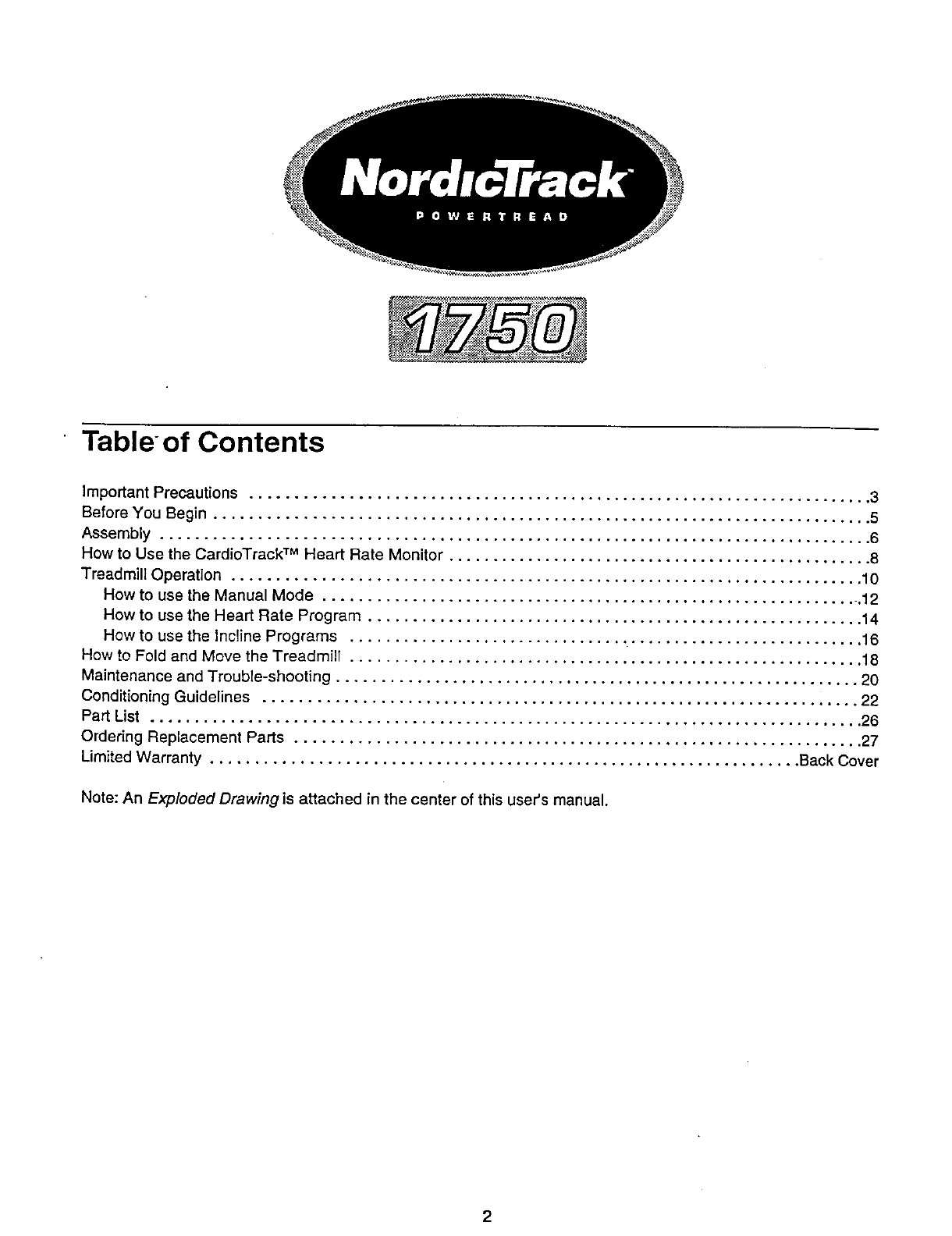 •The NAME OF THE PRODUCT (NordicTrack PowerTread TM 1750).
