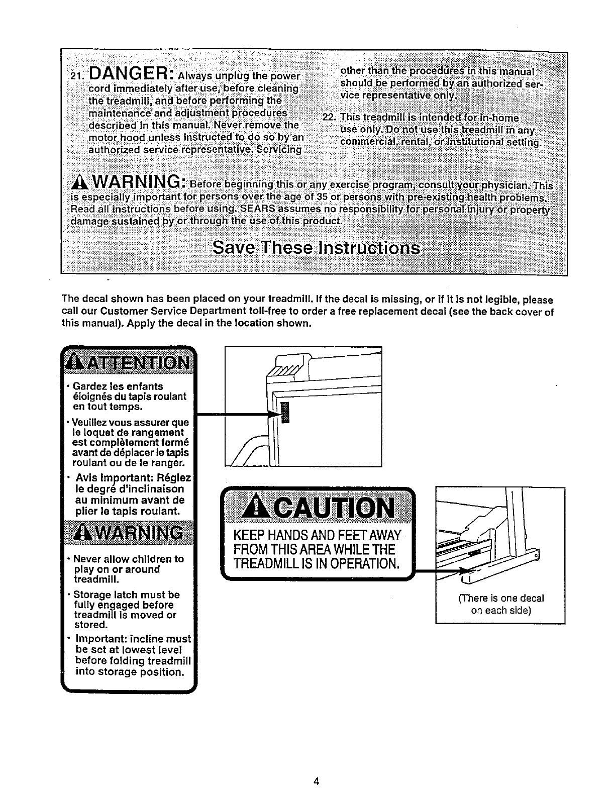 The decal shown has been placed on your treadmill. If the decal is missing, or if it is not legible, please