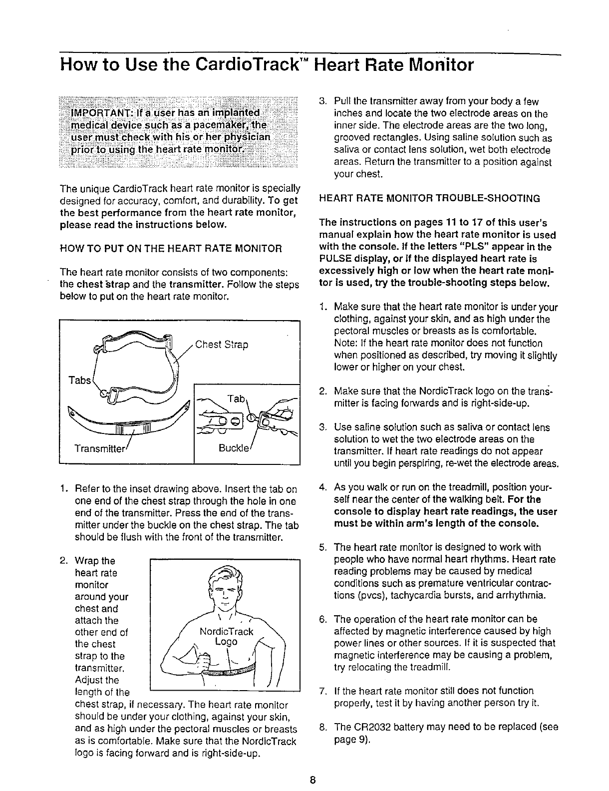 How to Use the CardioTrack TM Heart Rate Monitor ................................................. 8