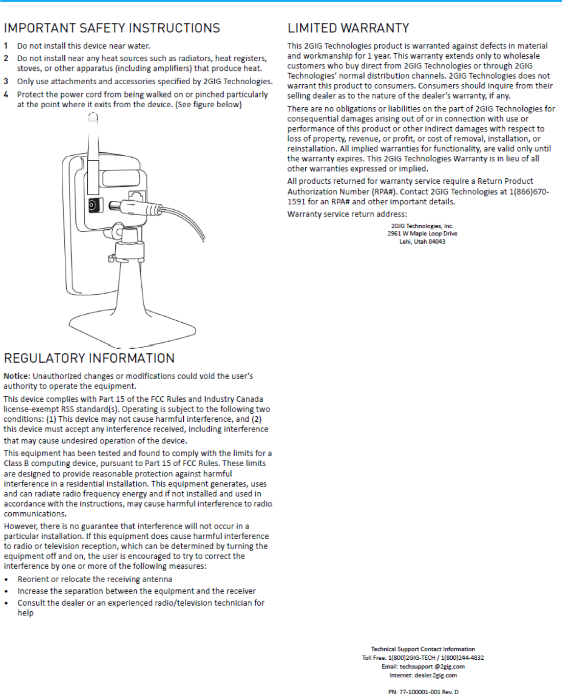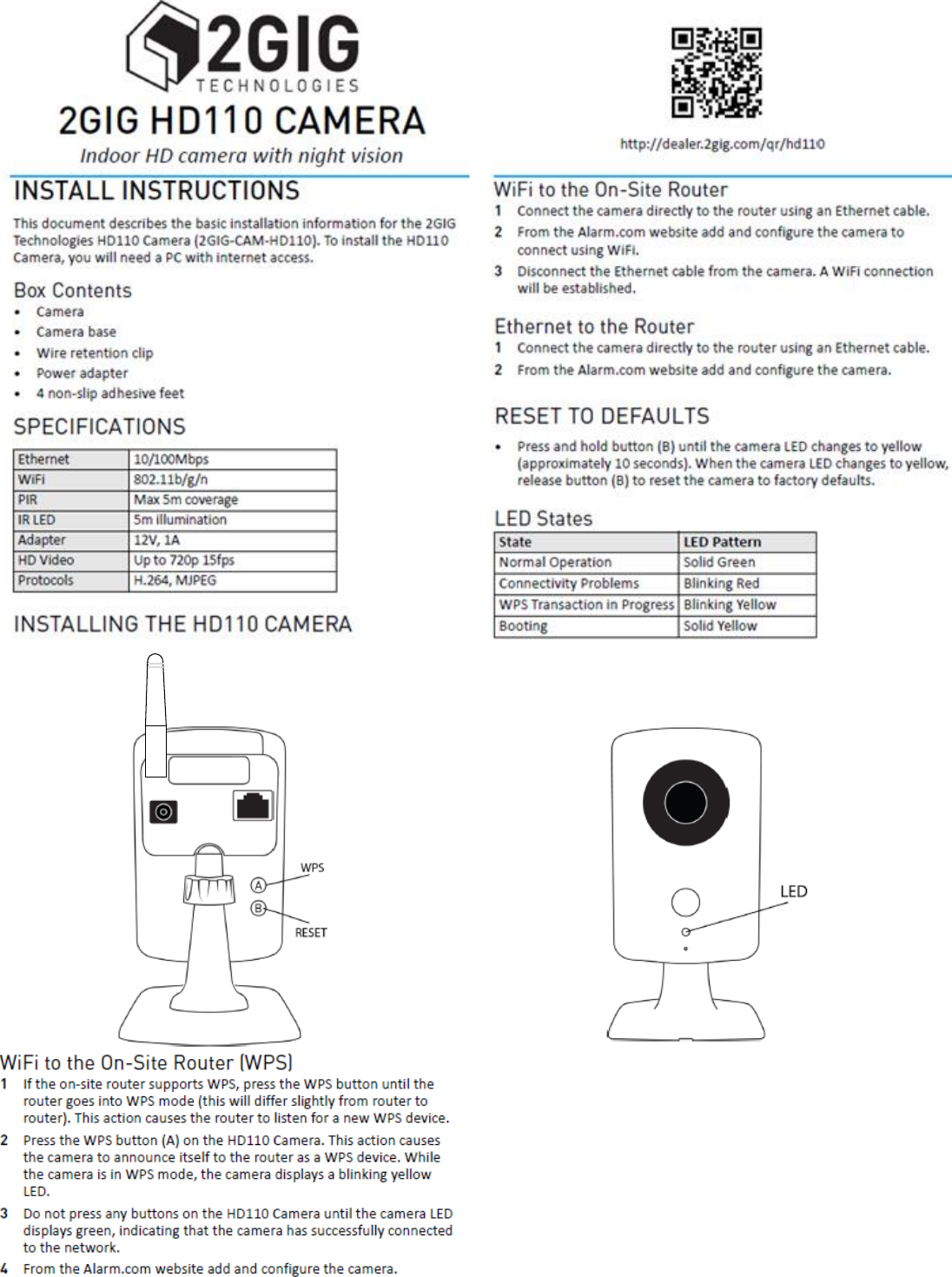 Nortek Security and Control 2GIG CAMHD110 IP network camera User Manual 1