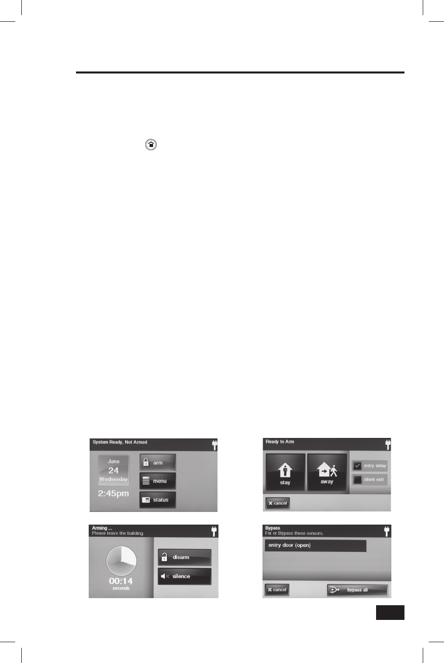 easy-to-identity buttons and icons. The system can be armed or disarmed