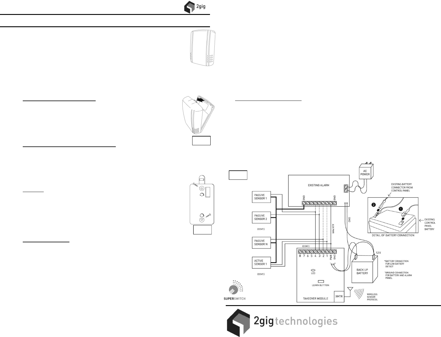 The 2GIG-TAKE-345 Super Switch is 2GIG’s wireless takeover module. This unit was designed to con-