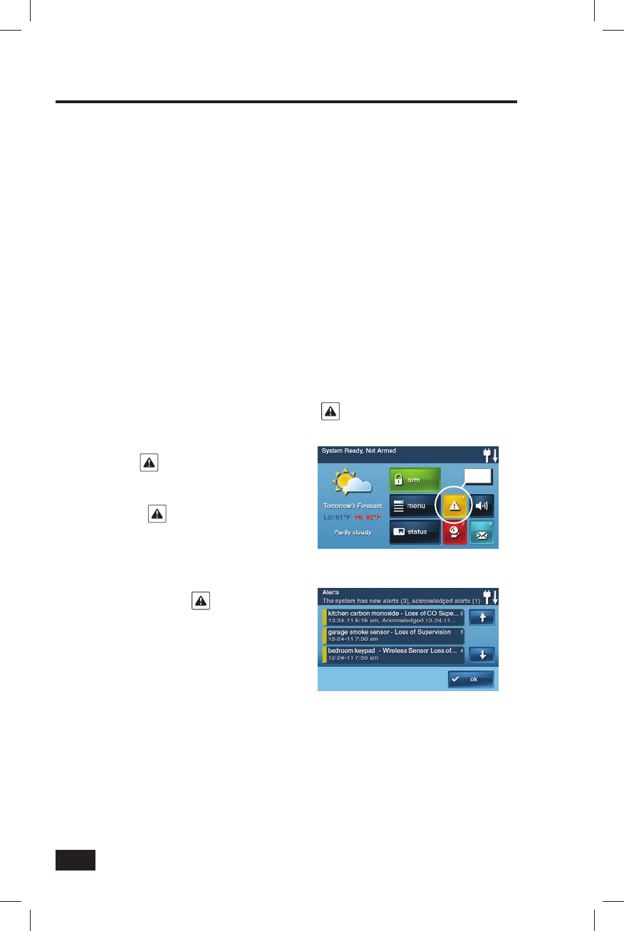 battery, the trouble alert will be displayed and logged by the Control Panel