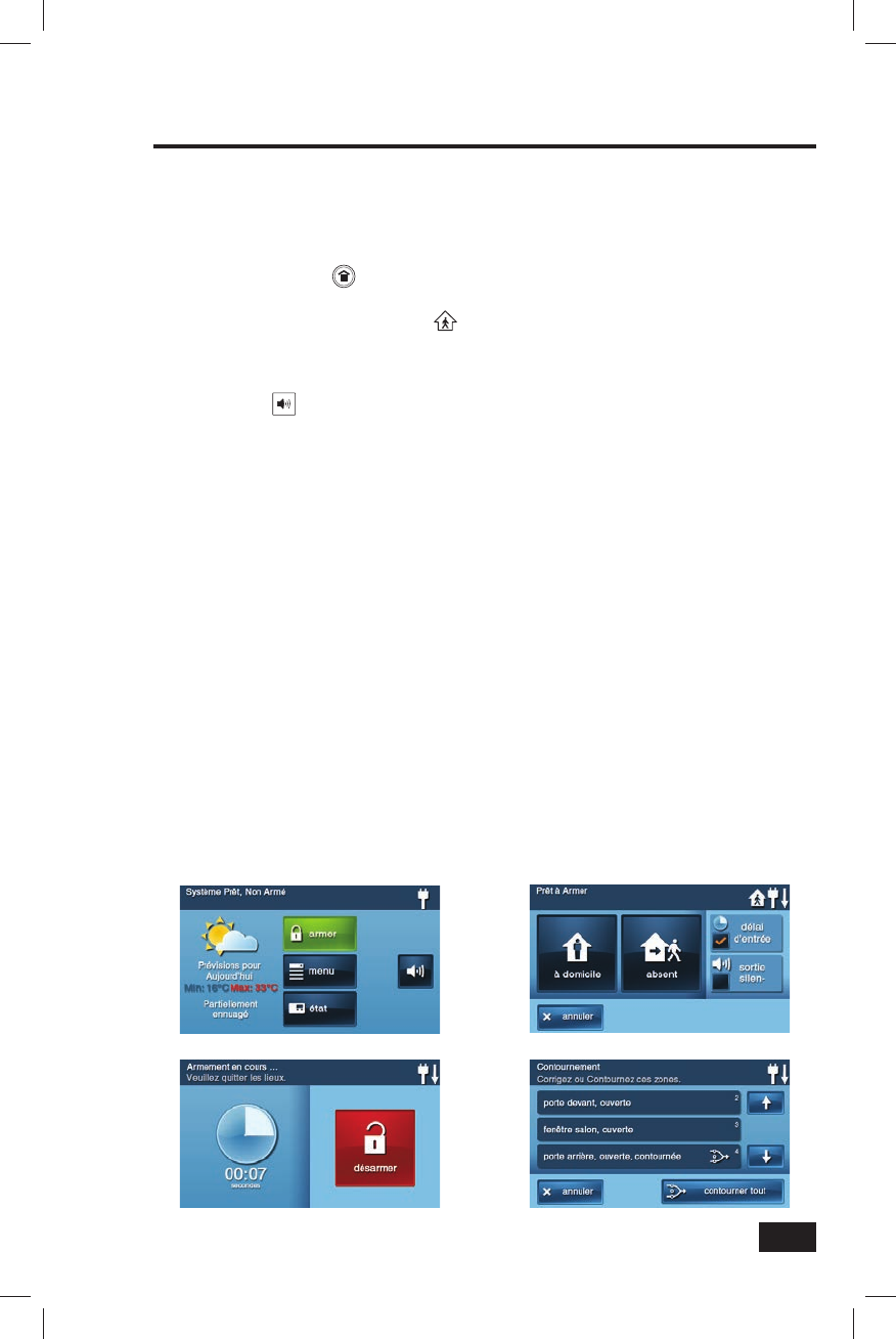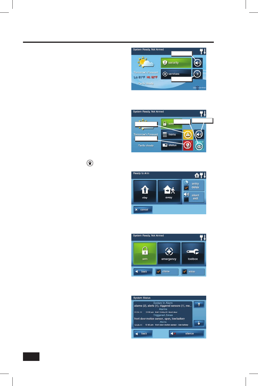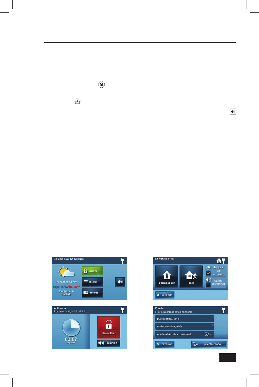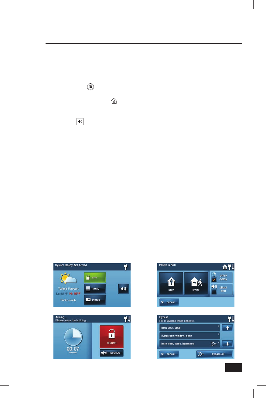 easy-to-identity buttons and icons. The system can be armed or disarmed