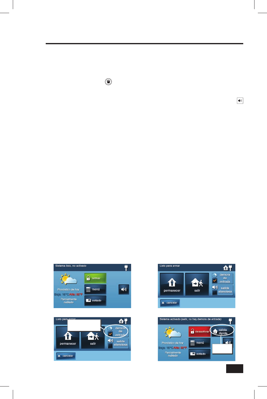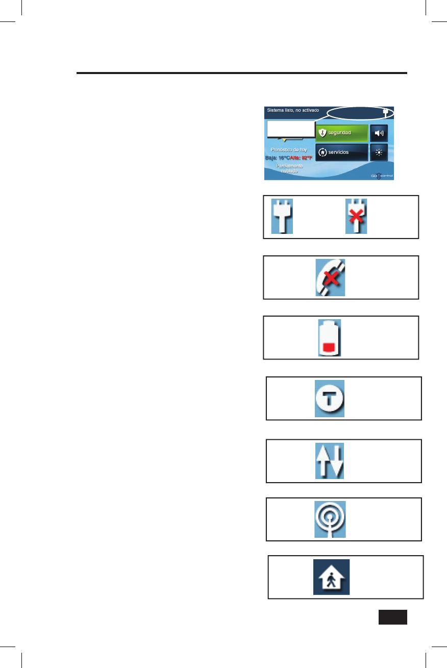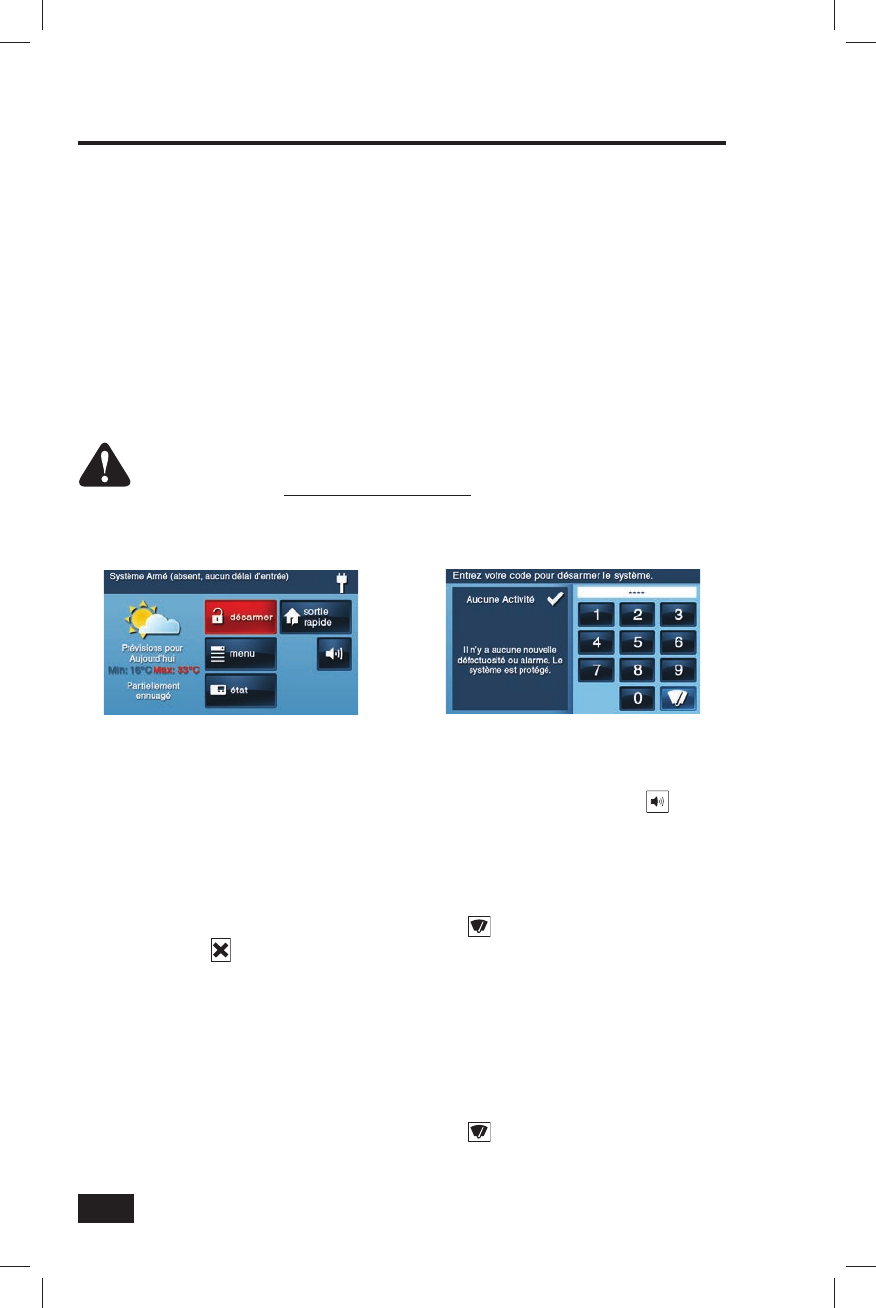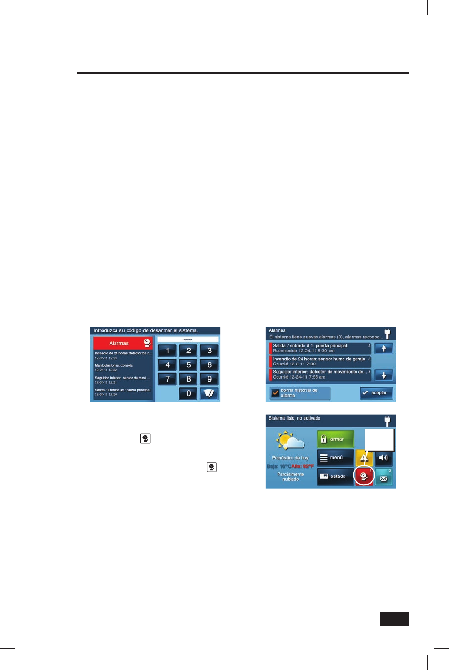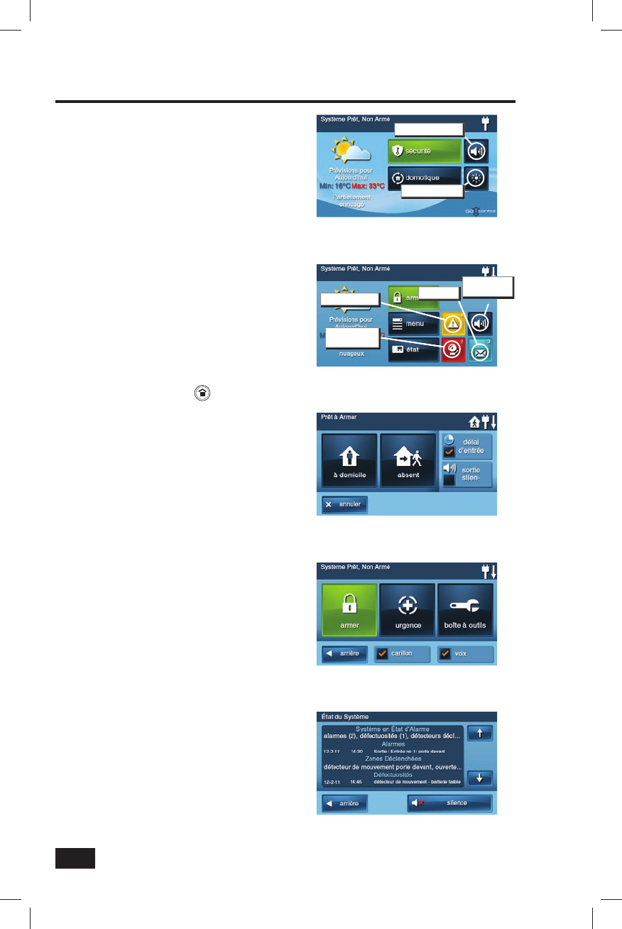 easy-to-identity buttons and icons. The system can be armed or disarmed
