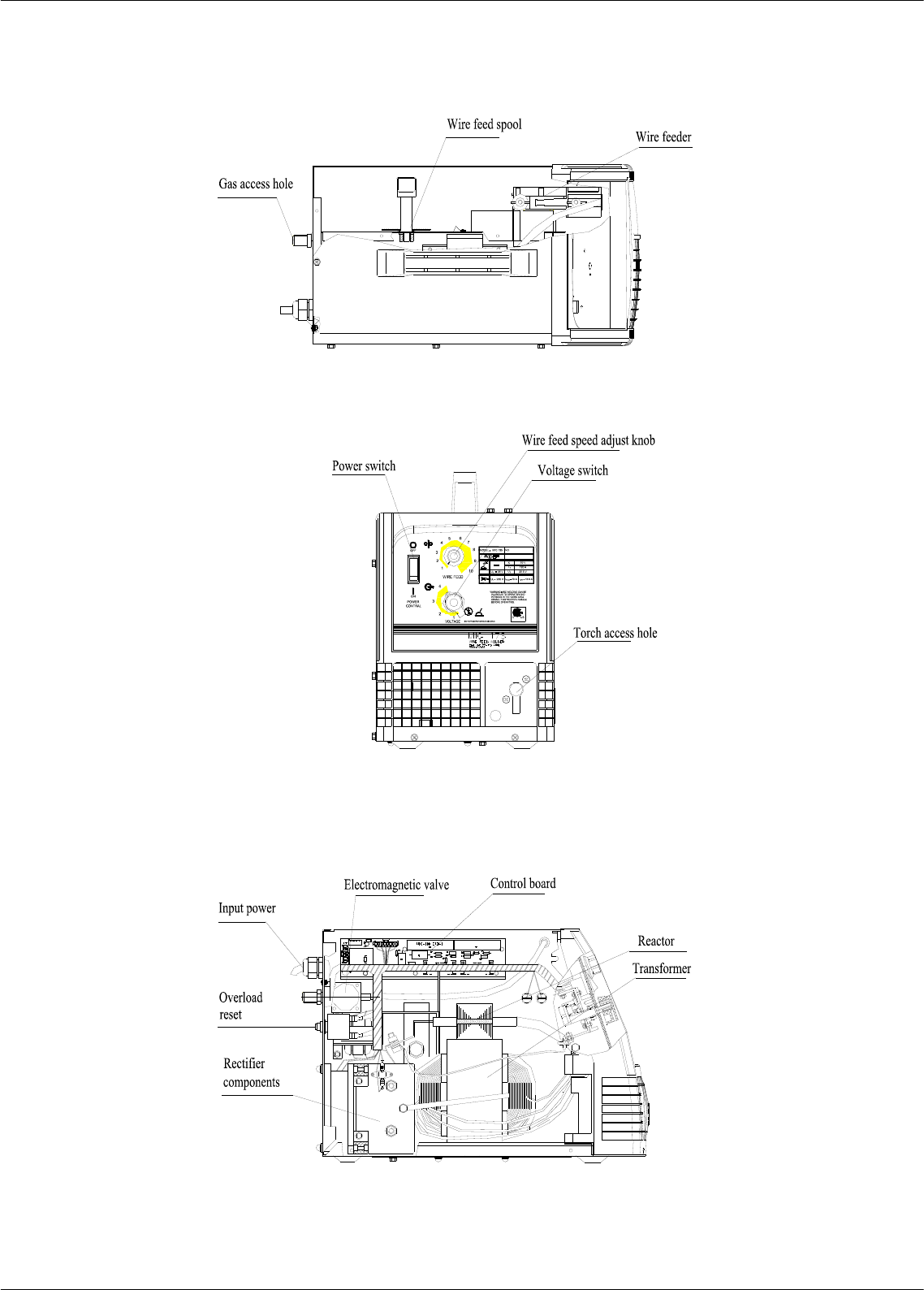 Includes: transformer, reactor, rectifier, solenoid valve, PC board, switches, controls, gas valve, drive