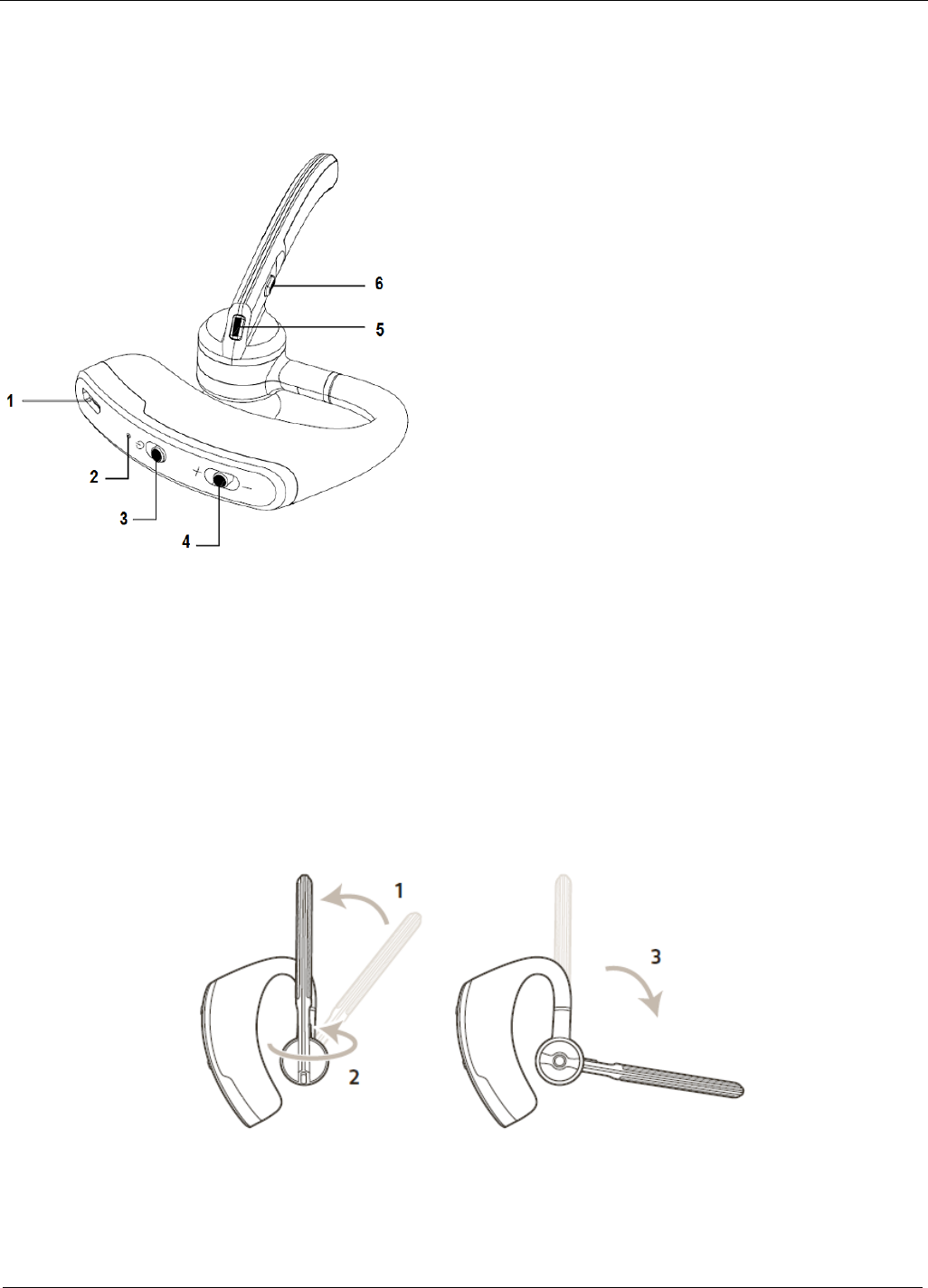 If you need to wear the headset to your other ear, you can rotation the earplug to the opposite side, and then adjust the microphone