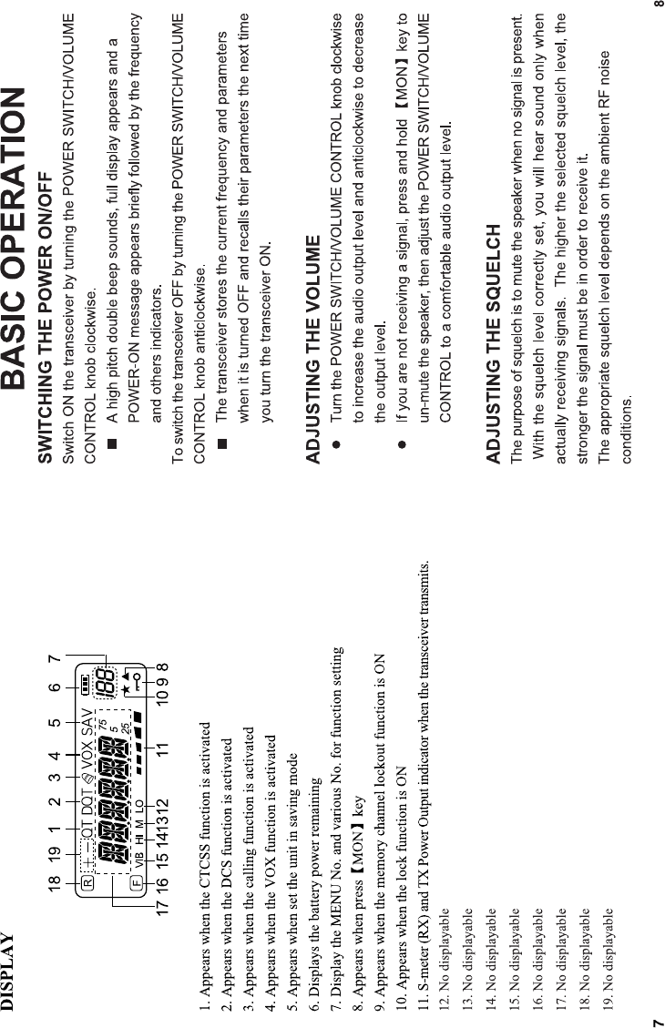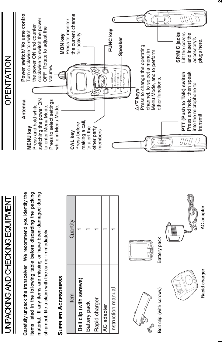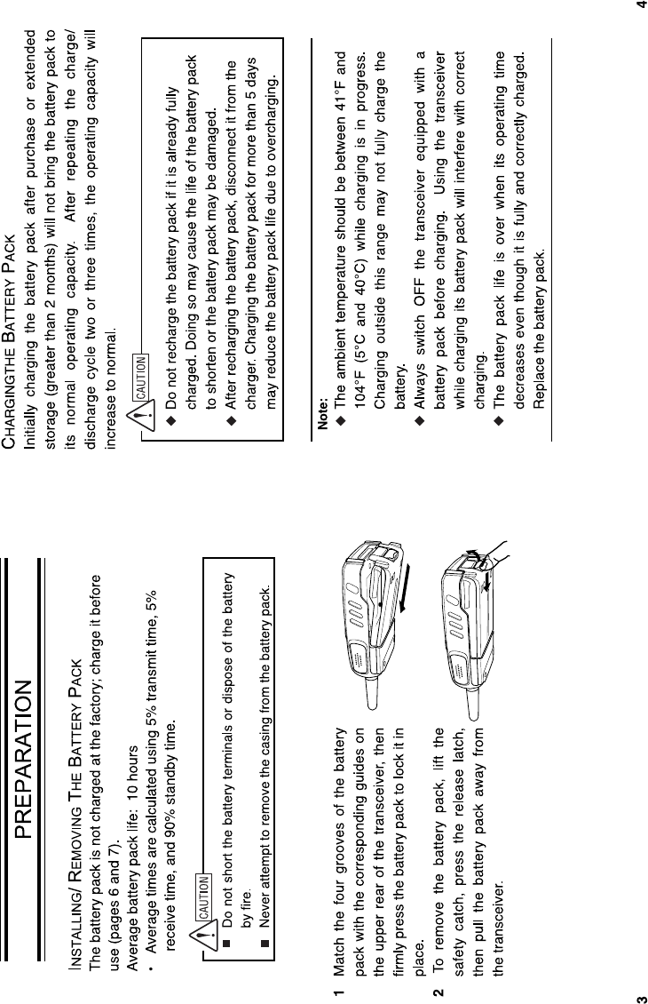 ᪽ DO NOT operate the radio without a proper antenna attached, as this may damaged the radio and may also cause