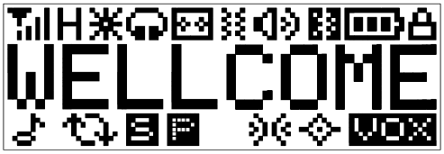 When you turn the radio on, the radio will chirps and the display briefly