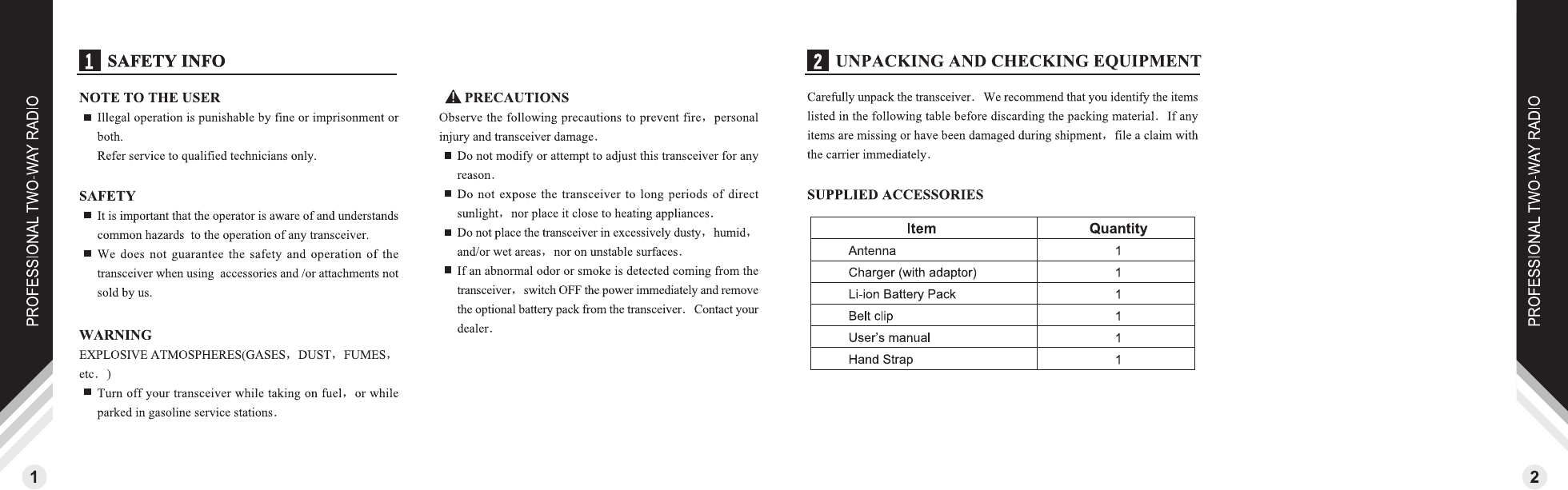 DO NOT operate the radio without a proper antenna attached, as this may damaged the radio and may also cause you